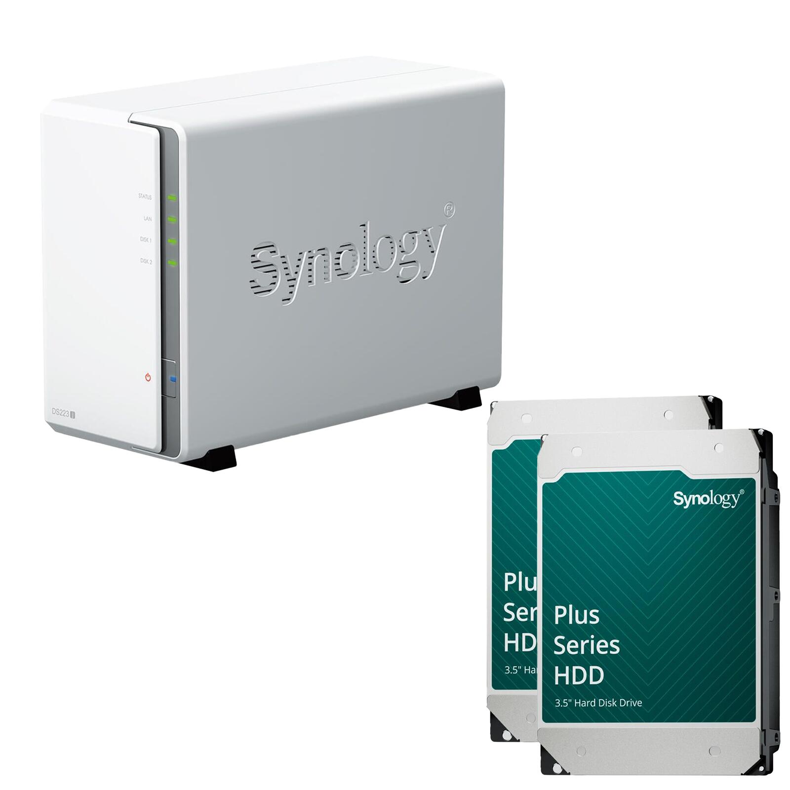 Synology DiskStation DS223J 2 Einschübe NAS-Server Leergehäuse + 2x Synology Plus 3.5" SATA 6Gb/s Festplatte 12 TB (24TB)