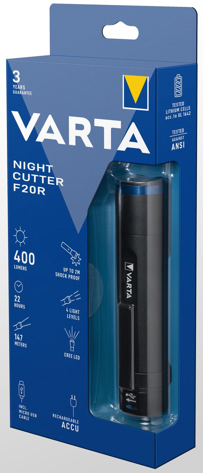 Diese VARTA Taschenlampe in Schwarz ist das perfekte Werkzeug, um auch in dunklen Situationen stets gerüstet zu sein. Mit ihrem eleganten schwarzen Farbton und der kompakten Größe ist sie nicht nur praktisch, sondern auch äußerst stylisch. Hergestellt von VARTA, einem renommierten Hersteller, garantiert die Taschenlampe NightCutter F20R Qualität und Zuverlässigkeit. Die schwarze Farbe verleiht der Taschenlampe ein modernes und schickes Aussehen, während die handliche Größe sie zu einem unverzichtbaren Begleiter für unterwegs macht. Egal, ob du sie auf Campingausflügen, in Notfällen oder einfach im Alltag verwendest, die VARTA Taschenlampe überzeugt mit ihrer Leistung. Die Taschenlampe NightCutter F20R zeichnet sich durch ihre einfache Handhabung aus. Mit nur einem Handgriff kannst du sie einschalten und von ihrer hellen Beleuchtung profitieren. Die hochwertige Verarbeitung sorgt dafür, dass die Taschenlampe auch rauen Bedingungen standhält, was sie zu einem langlebigen und robusten Produkt macht. Mit der VARTA Taschenlampe in Schwarz hast du stets Licht in der Dunkelheit - sei es beim Camping, Wandern oder in Notfällen. Verlasse dich auf die Qualität und Erfahrung von VARTA und erlebe selbst, wie diese Taschenlampe zu einem unverzichtbaren Begleiter in deinem Alltag wird.Technische Daten