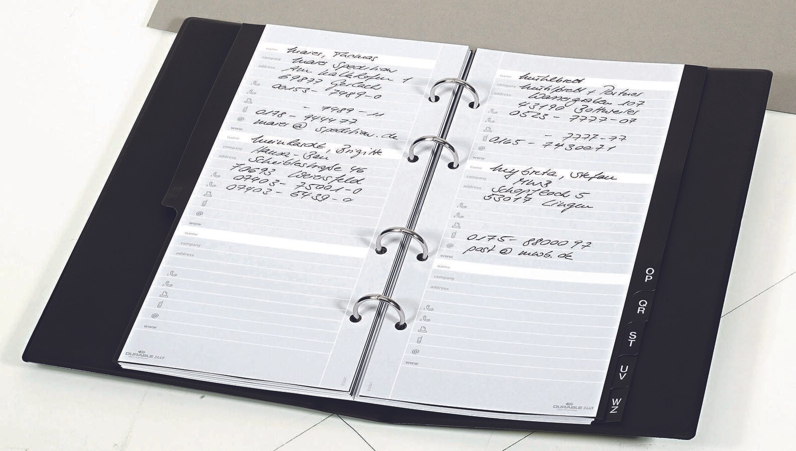 Halte deine Kontakte organisiert und griffbereit mit dem hochwertigen Telefon-Ringbuch in anthrazit - dem idealen Begleiter für deine geschäftlichen und persönlichen Kontakte.