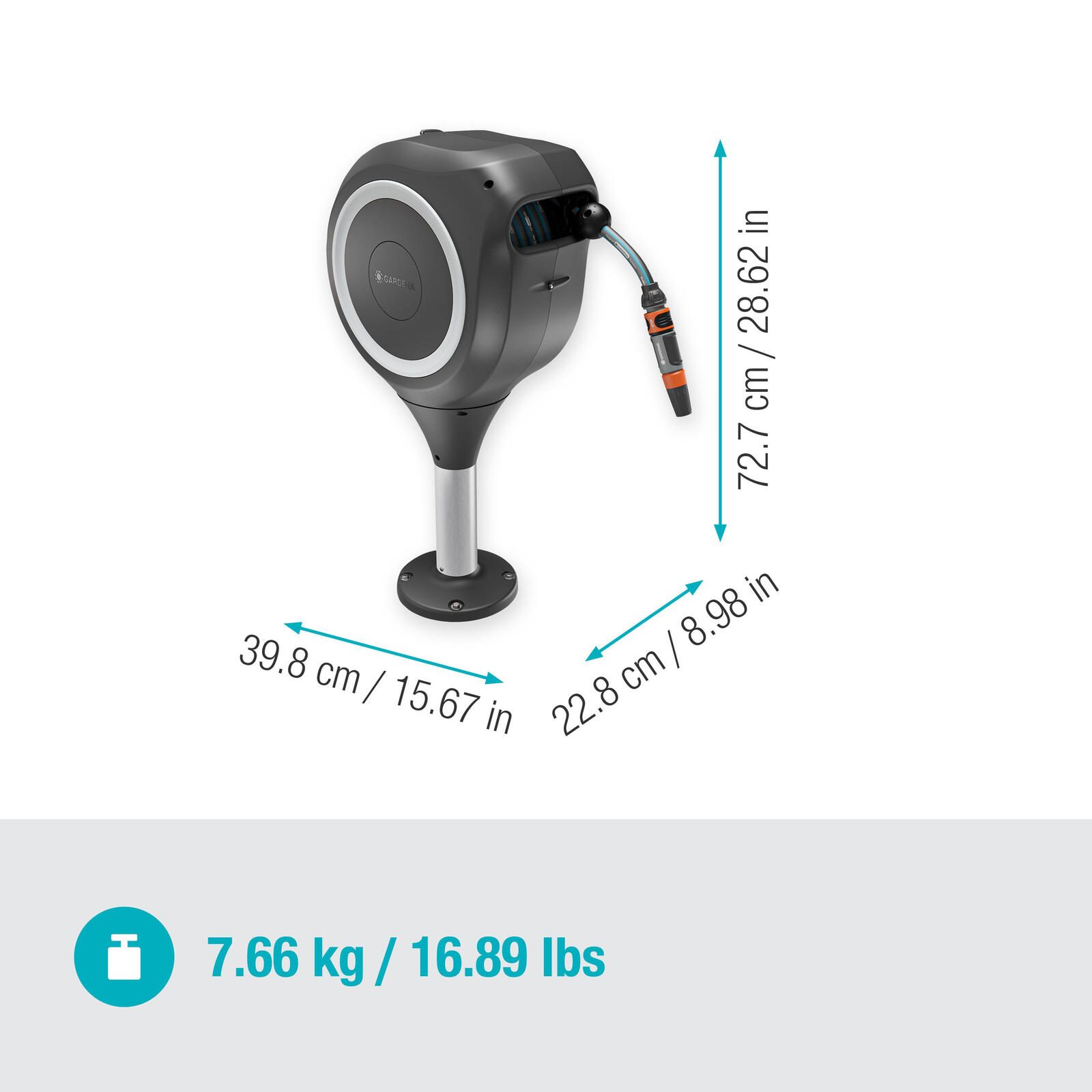 - Mit RollUp-Technologie, die für ein einfaches Ausrollen und bequemes Aufrollen ohne Verwicklungen sorgt. Nach der Montage direkt auf Holz- oder Betonböden lässt sich die Schlauchbox um 360° drehen.