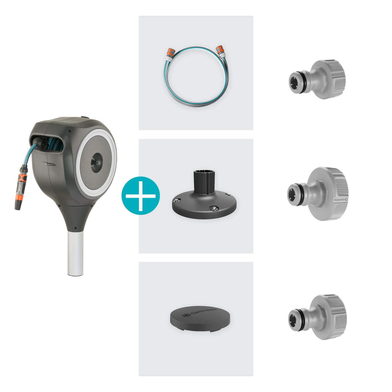 - Lieferung inkl.: 1x Schlauchbox RollUp S, inkl. 1x 15m Qualitätsschlauch 11mm, 1x flexibler Anschlussschlauch, Hahnverbinder, Schlauchverbinder, Wasserstop, Reinigungsspritze, 1x Universalbefestigung inkl. Schrauben, Dübel