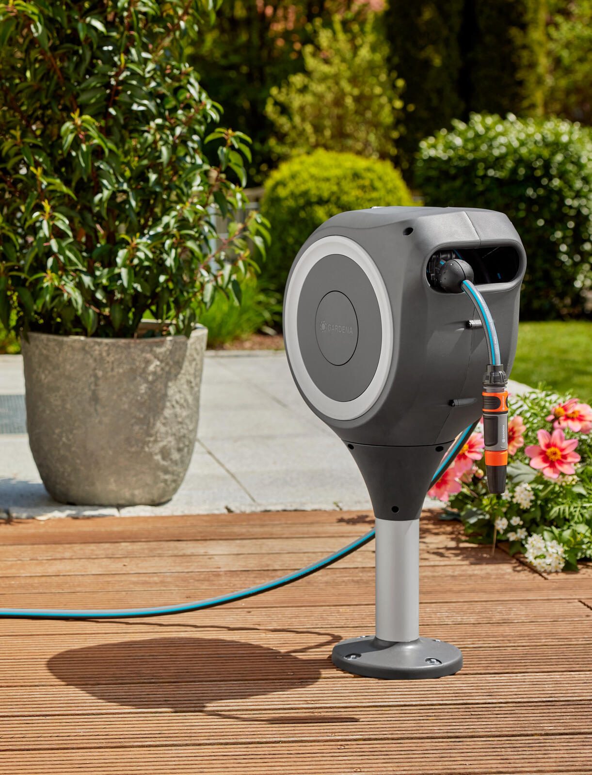 Mit der Gardena Terrassen-Schlauchbox RollUp S profitieren Sie von einer durchdachten Kombination aus Funktionalität, Design und Benutzerfreundlichkeit, die Ihre Gartenarbeit spürbar erleichtert und für Ordnung auf Ihrer Terrasse sorgt.