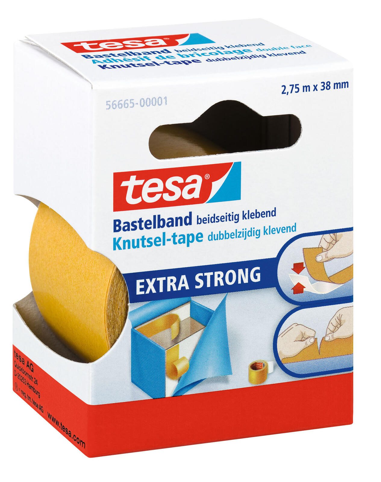 - doppelseitig klebend, von Hand einreißbar, extra stark klebend