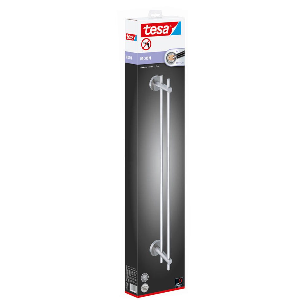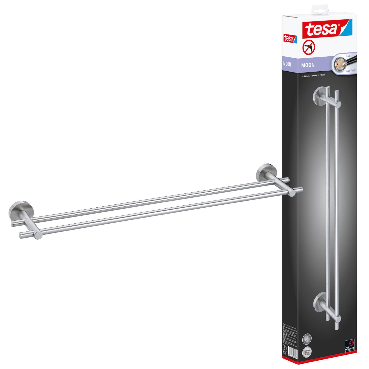 Der tesa Handtuchhalter 2-fach MOON in elegantem Silber vereint modernes Design mit hoher Funktionalität. Gefertigt aus robustem Metall, überzeugt dieser Handtuchhalter durch seine langlebige Qualität und zeitlose Optik. Mit den Maßen von 64,0 x 4,9 x 11,5 cm bietet er ausreichend Platz, um zwei Handtücher ordentlich und griffbereit aufzuhängen.