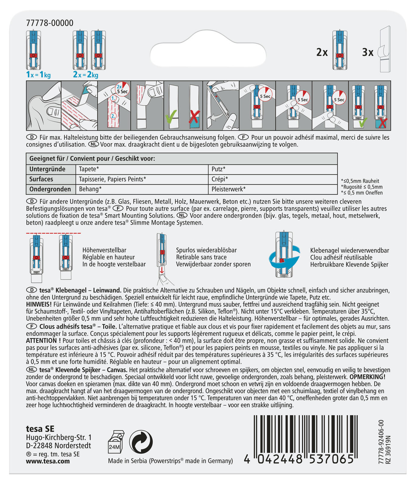 Die tesa Klebenägel in der praktischen Größe von 2.3 cm x 6.4 cm sind die ideale Lösung für das Aufhängen von Objekten an glatten und festen Untergründen. Mit ihrer eleganten weißen Farbe fügen sie sich harmonisch in jede Raumgestaltung ein und sind somit nicht nur funktional, sondern auch ästhetisch ansprechend. Diese Klebenägel sind speziell für den Innenbereich konzipiert und bieten eine maximale Belastbarkeit von bis zu 1 kg, was sie zu einem zuverlässigen Helfer im Haushalt macht. Die tesa Klebenägel sind ablösbar, was bedeutet, dass du sie jederzeit ohne Rückstände entfernen kannst. Dies ist besonders vorteilhaft, wenn du häufig umdekorierst oder deine Einrichtung anpassen möchtest. Hergestellt aus hochwertigem Kunststoff, garantieren sie Langlebigkeit und Stabilität. Sie haften sicher auf verschiedenen Oberflächen wie Putz und Tapete, wodurch sie vielseitig einsetzbar sind. Mit einer Packung erhältst du gleich zwei Klebenägel, was dir die Flexibilität gibt, mehrere Objekte gleichzeitig aufzuhängen oder verschiedene Räume zu gestalten. Ob für das Anbringen von Bildern, Postern oder anderen Deko-Elementen, die tesa Klebenägel bieten dir eine einfache und effektive Lösung, um deinem Zuhause einen persönlichen Touch zu verleihen. Vertraue auf die Qualität von tesa und erlebe, wie einfach das Aufhängen von Objekten sein kann. Die tesa Klebenägel sind nicht nur praktisch, sondern auch ein cleverer Weg, um Ordnung und Stil in deine Räume zu bringen.Technische Daten