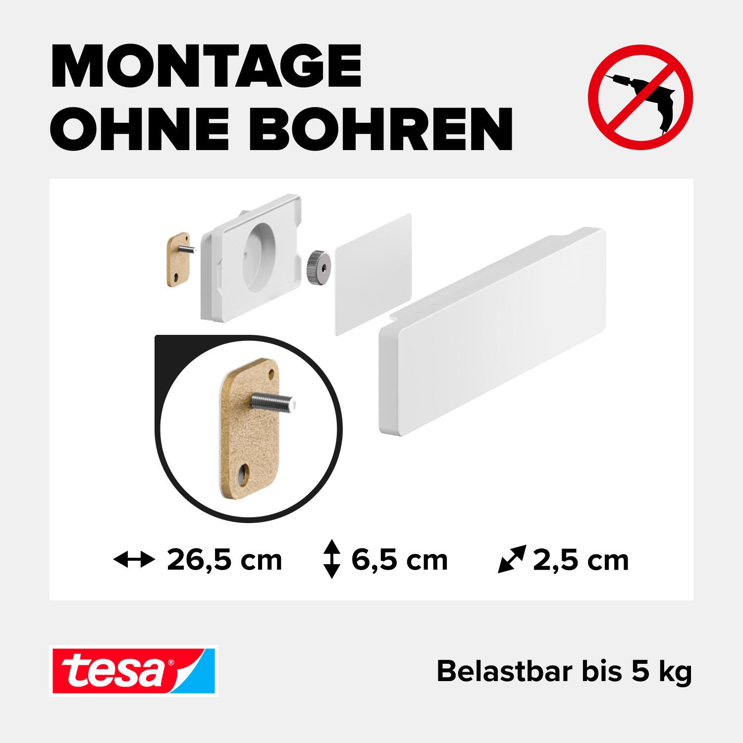 - Bestehend aus: 1x Einzeladapter, 1x Messerhalter, 1x tesa® Power.Kit Adapter, 1x tesa® Klebeapplikator, 1x Anleitung, 1x Wasserwaage, 1x Rändelmutter