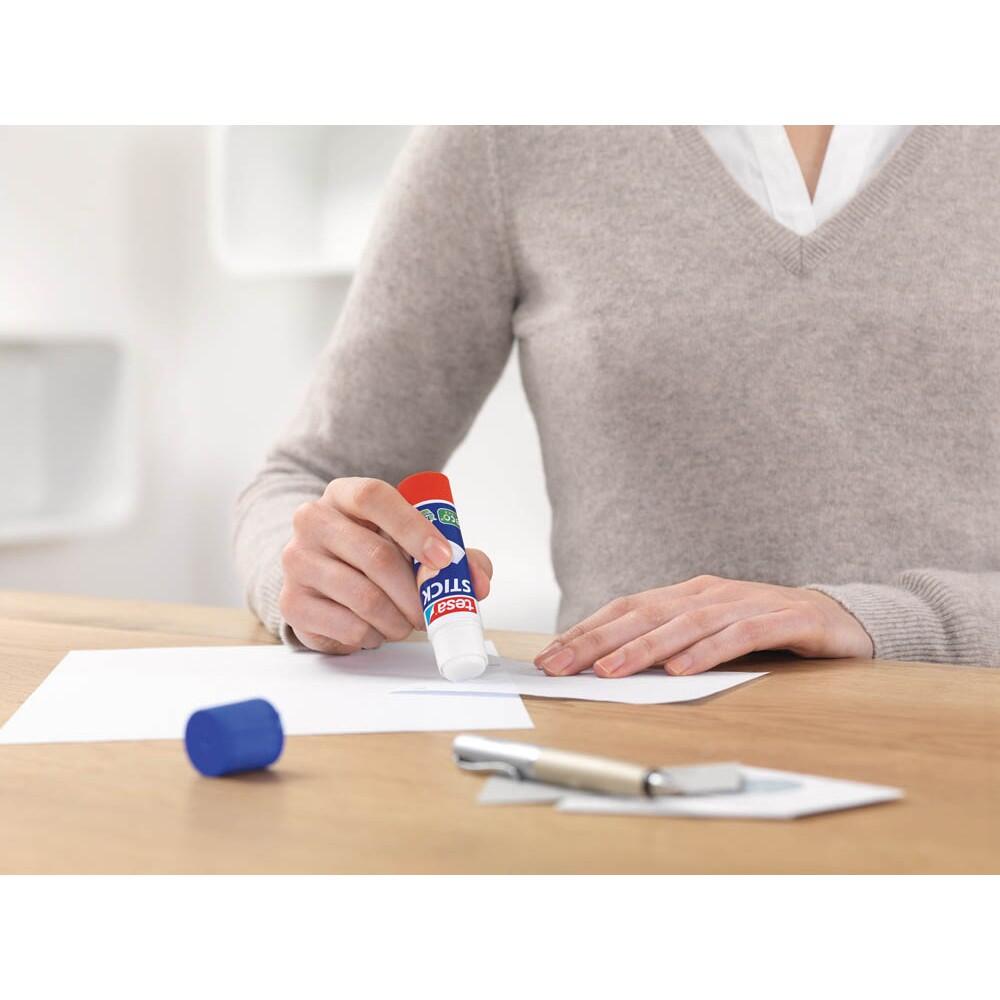 Der tesa STICK Klebestift mit einem Inhalt von 20,0 g ist die ideale Lösung für kreative Projekte und alltägliche Anwendungen. Mit seiner transparenten Farbe fügt er sich nahtlos in deine Bastelarbeiten ein, ohne unschöne Rückstände zu hinterlassen. Dieser Klebestift überzeugt durch seine herausragenden Eigenschaften: Er ist auswaschbar, geruchsarm und vollkommen lösungsmittelfrei. Das bedeutet, dass du ihn bedenkenlos in der Nähe von Kindern verwenden kannst und gleichzeitig die Umwelt schonst. Die schnelle Trocknungszeit des tesa STICK Klebestifts ermöglicht es dir, deine Projekte zügig abzuschließen, ohne lange warten zu müssen. Er eignet sich hervorragend für verschiedene Materialien wie Fotos, Papier und Pappe, was ihn zu einem unverzichtbaren Werkzeug für Schule, Büro und Hobby macht. Egal, ob du ein kreatives Kunstprojekt in Angriff nimmst oder wichtige Dokumente zusammenkleben möchtest, dieser Klebestift bietet dir die nötige Flexibilität und Zuverlässigkeit. Ein weiteres praktisches Merkmal ist die Steckkappe mit Rollstopp, die dafür sorgt, dass der Klebestift immer griffbereit ist und nicht wegrollt. So bleibt dein Arbeitsplatz ordentlich und du hast immer alles im Blick. Der tesa STICK Klebestift ist nicht nur funktional, sondern auch benutzerfreundlich gestaltet, sodass du ihn mühelos bedienen kannst. Mit dem tesa STICK Klebestift 20,0 g erhältst du ein vielseitiges Produkt, das sich ideal für alle deine Klebeanforderungen eignet. Die Kombination aus einfacher Handhabung, sicheren Inhaltsstoffen und schneller Trocknung macht ihn zu einem unverzichtbaren Begleiter für alle Bastel- und Büroarbeiten.Technische Daten