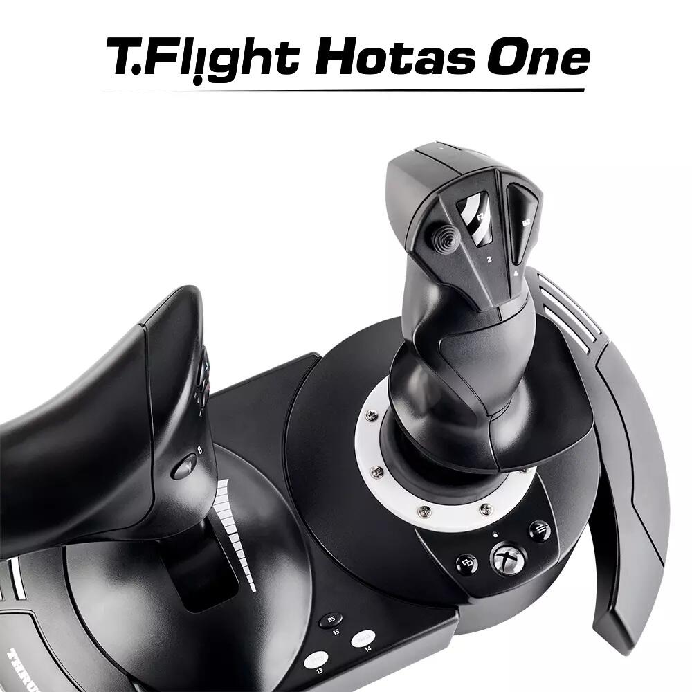 - Der T.Flight Hotas One verfügt über 14 Aktionstasten und 5 Achsen, plus die 3 Achsen der TFRP