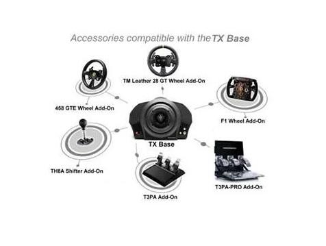 Das Thrustmaster TX Racing Wheel Servo Base ist vollständig kompatibel mit dem Eco-Produktsystem von Thrustmaster. Spieler können Add-ons wählen, um das ultimative Rennlenkrad zu erlangen. Es wird ein Pedalset (wie das dreipedalige T3PA oder T3PA-PRO Pedalset von Thrustmaster) benötigt, um den Nervenkitzel eines ultra-realistischen Rennempfindens zu erleben. Und seitdem ein Kupplungspedal dafür ausgelegt ist blitzschnelle Schaltvorgänge zu ermöglichen, können Benutzer natürlich das TX Racing Wheel Servo Base mit einer Gangschaltung, wie beispielsweise dem TH8A, komplettieren. Je nach Art der persönlichen Vorlieben, welche Fahrzeuge genutzt werden und welches Rennen gefahren werden, können die Benutzer sich schließlich für eins (oder mehrere) der Lenkräder von Thrustmaster entscheiden. Derzeit verfügbar sind das TM Leather 28 GT Wheel Add-On, das Ferrari F1 Wheel Add-On, das Ferrari GTE Wheel Add-On und die neue 599XX EVO 30 Wheel Add-On Alcantara Edition! Das TX Racing Wheel Servo Base beinhaltet eine Lenkkranzbasis, ein Befestigungssystem und ein Netzkabel. Ergänzen Sie einfach nach Ihrem Gusto Ihre Servobasis mit Lenkrädern, Pedalsets, falls gewünscht, mit einer optionalen Gangschaltung von Thrustmaster, damit Sie als Erster ins Ziel fahren!
