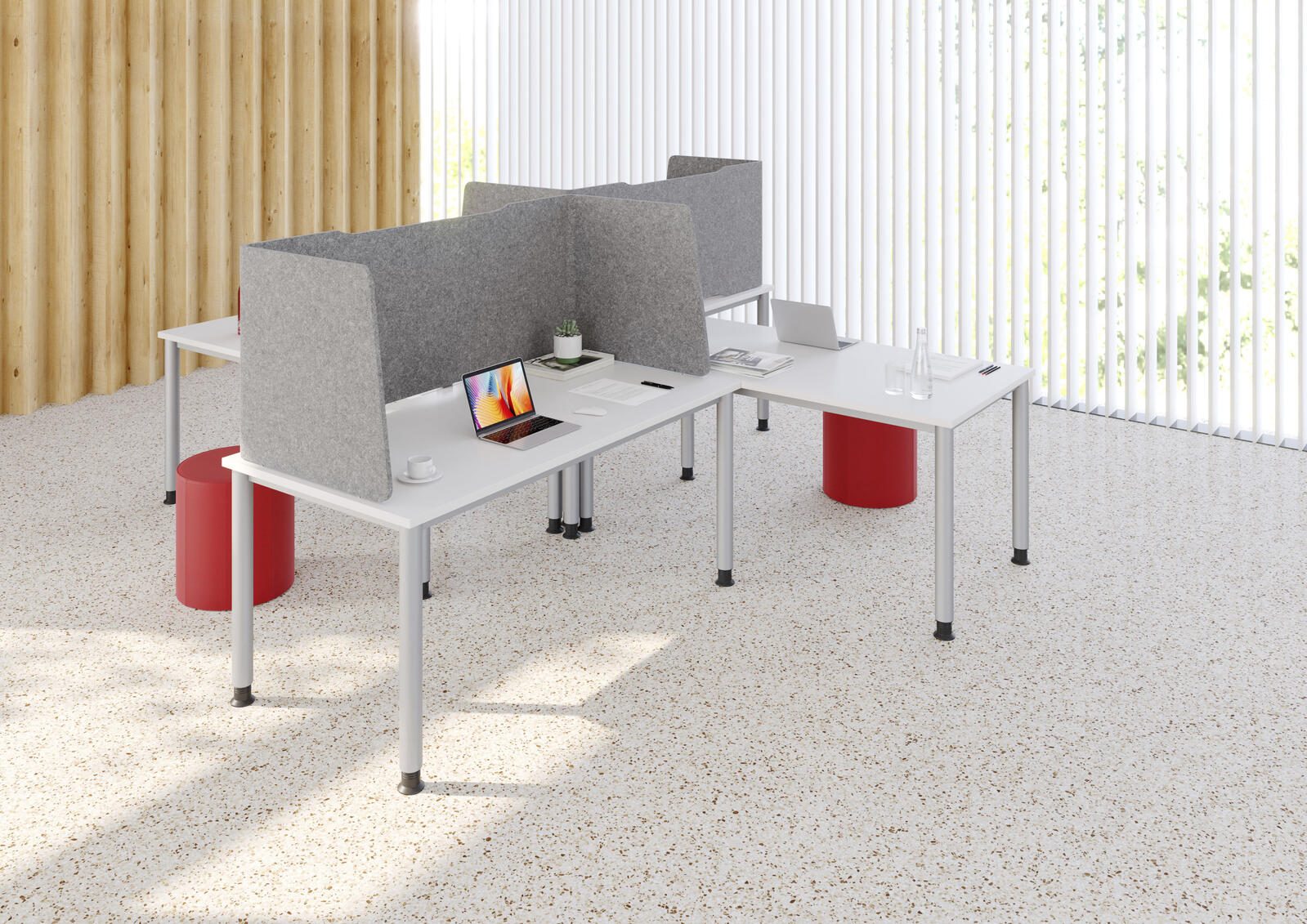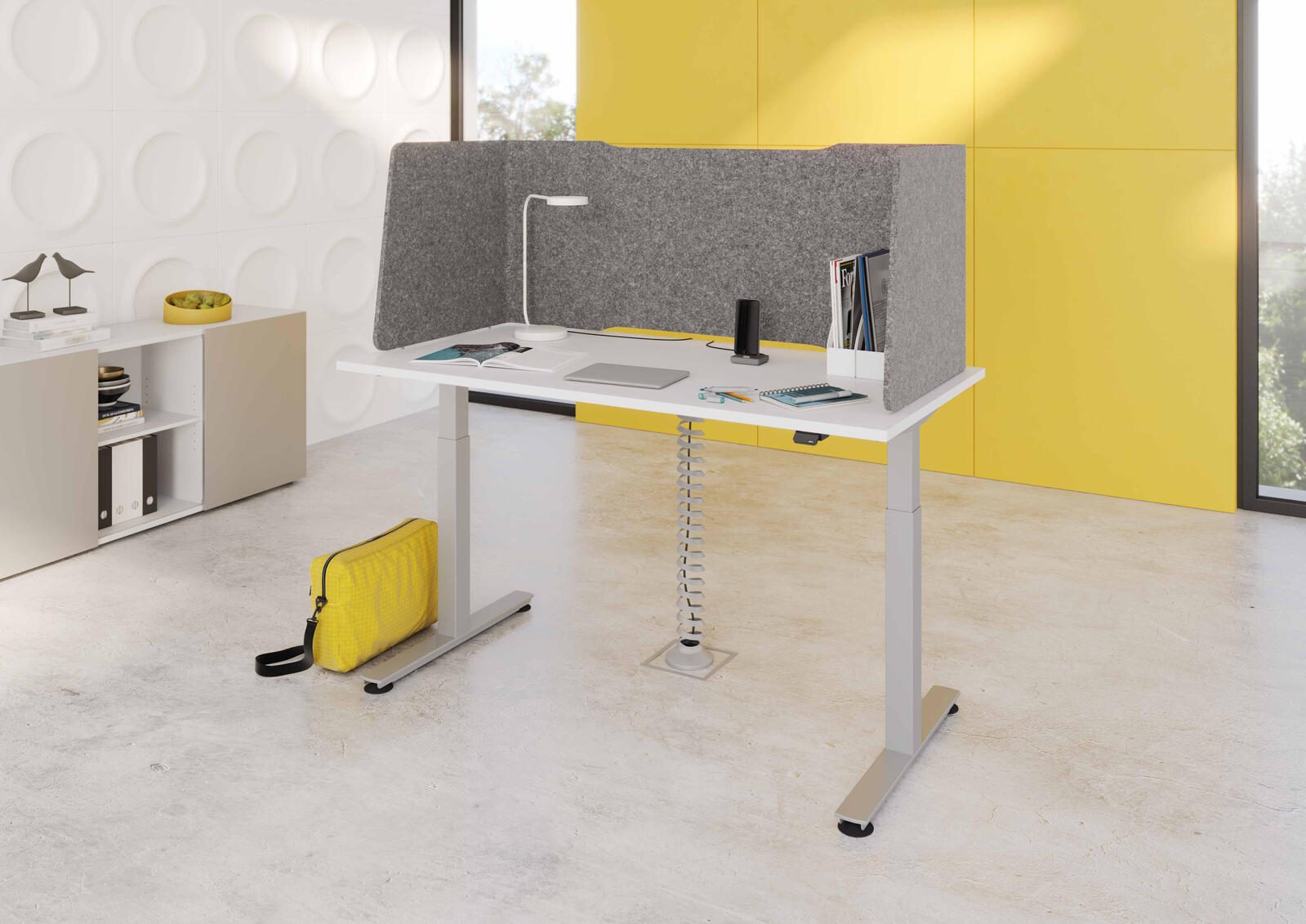 Mit der HAMMERBACHER Akustik-Tischtrennwand schaffst du nicht nur eine ansprechende Gestaltung deines Arbeitsbereichs, sondern förderst auch die Konzentration und Produktivität, indem du störende Geräusche minimierst. Optimiere deinen Arbeitsplatz und genieße die Vorteile einer ruhigen und fokussierten Arbeitsumgebung.