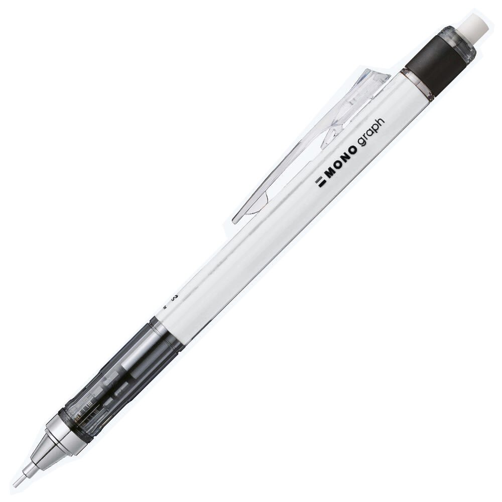Der Tombow Druckbleistift MONO graph ist ein präzises Schreibgerät, das sich sowohl zum Schreiben als auch zum Zeichnen eignet. Er verfügt über eine runde Form, die eine angenehme Handhabung ermöglicht. Die Schaftfarbe ist weiß, was dem Stift ein schlichtes und modernes Erscheinungsbild verleiht.