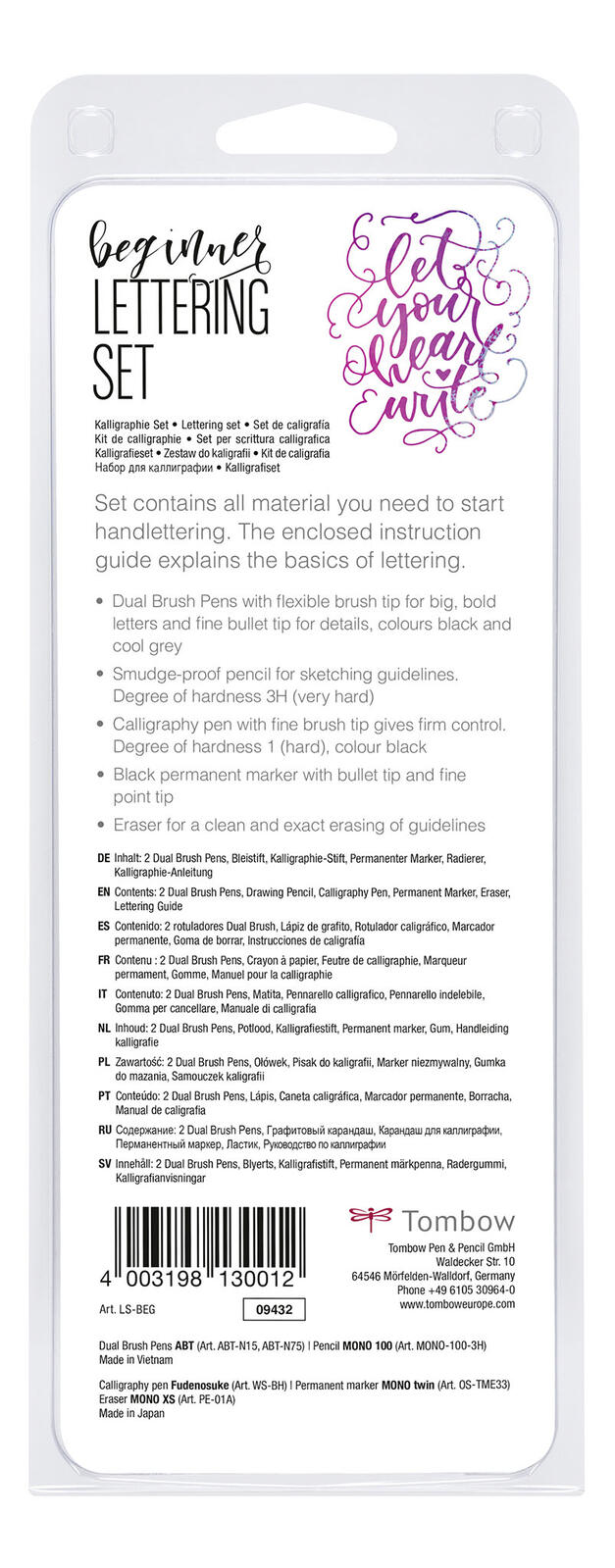 Tauche ein in die Welt des Handletterings mit dem Tombow Lettering Set Beginner und lasse deiner Kreativität freien Lauf. Kreiere einzigartige Designs, betone wichtige Botschaften und lass deine Schriftkunst erstrahlen. Mach deine Projekte mit diesem Set zu wahren Meisterwerken!
