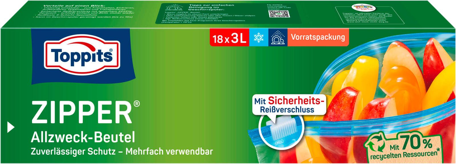 Toppits Gefrierbeutel ZIPPER 3,0 l 1 Pack = 18 St.