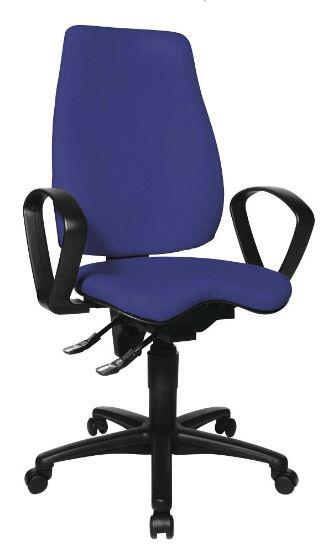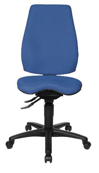 Der Topstar Body Balance 450 Bürodrehstuhl vereint modernes Design mit innovativer Ergonomie, um dir ein komfortables und gesundes Sitzen zu ermöglichen. Mit seiner stufenlosen Sitzhöhenverstellung, die durch einen praktischen Toplift unterstützt wird, lässt sich der Stuhl individuell an deine Bedürfnisse anpassen, sodass du stets in der optimalen Position arbeiten kannst. Ein besonderes Highlight dieses Drehstuhls ist der Fitness-Orthositz, der mit der einzigartigen Body-Balance-Tec-Technologie ausgestattet ist. Diese ermöglicht eine dreidimensionale Beweglichkeit, die nicht nur den Komfort erhöht, sondern auch aktiv zur Förderung einer gesunden Sitzhaltung beiträgt. Die Permanentkontaktmechanik erlaubt dir zudem eine einfache und flexible Anpassung der Rückenlehnenneigung, sodass du immer die richtige Unterstützung für deinen Rücken hast. Die ergonomisch geformte Rückenlehne ist in der Höhe verstellbar und bietet eine integrierte Lendenwirbelstütze, die gezielt die Wirbelsäule entlastet und Verspannungen vorbeugt. Dies ist besonders wichtig für lange Arbeitstage, in denen eine gute Haltung entscheidend ist. Der Stuhl verfügt über ein robustes Kunststoff-Fußkreuz in elegantem Schwarz, das nicht nur stabil ist, sondern auch mit Sicherheitsdoppelrollen ausgestattet ist, die speziell für Teppichböden geeignet sind. Die ansprechende blaue Stoffbezug verleiht dem Stuhl einen modernen Look und sorgt gleichzeitig für eine angenehme Sitzoberfläche. Der Topstar Body Balance 450 ist die ideale Wahl für alle, die Wert auf Ergonomie und Stil legen, ohne dabei auf Funktionalität zu verzichten. Er eignet sich hervorragend für das Homeoffice sowie für den Einsatz im Büro und unterstützt dich dabei, auch über längere Zeiträume hinweg konzentriert und komfortabel zu arbeiten.Technische Daten