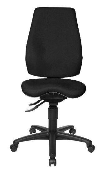 Der Topstar Body Balance 450 Bürodrehstuhl vereint modernes Design mit innovativer Ergonomie und bietet dir eine komfortable Sitzlösung für lange Arbeitstage. Mit seiner stufenlosen Sitzhöhenverstellung durch den praktischen Toplift kannst du die Höhe des Stuhls ganz nach deinen individuellen Bedürfnissen anpassen, was eine optimale Sitzposition ermöglicht. Der Stuhl kommt ohne Armlehnen, was dir mehr Bewegungsfreiheit und Flexibilität während deiner Arbeit bietet. Ein herausragendes Merkmal des Body Balance 450 ist der Fitness-Orthositz, der mit der Body-Balance-Tec-Gelenk-Technologie ausgestattet ist. Diese ermöglicht eine dreidimensionale Beweglichkeit des Sitzes, sodass du dich ganz natürlich und dynamisch bewegen kannst. Diese Funktion fördert eine gesunde Körperhaltung und beugt Verspannungen vor, die häufig bei langem Sitzen entstehen. Die Permanentkontaktmechanik zur Verstellung der Rückenlehnenneigung sorgt dafür, dass du jederzeit die ideale Unterstützung für deinen Rücken erhältst. Die ergonomisch geformte Rückenlehne ist in der Höhe verstellbar und bietet eine integrierte Lendenwirbelstütze, die gezielt die Bereiche entlastet, die oft unter Druck stehen. So kannst du dich auf deine Aufgaben konzentrieren, ohne von körperlichen Beschwerden abgelenkt zu werden. Das schwarze Kunststoff-Fußkreuz verleiht dem Stuhl nicht nur Stabilität, sondern ist auch mit Sicherheitsdoppelrollen ausgestattet, die speziell für Teppichböden geeignet sind. Dies sorgt für eine mühelose Mobilität und schützt gleichzeitig den Bodenbelag in deinem Büro. Der Topstar Body Balance 450 Bürodrehstuhl ist die perfekte Wahl für alle, die Wert auf Ergonomie und Komfort legen, während sie ihre täglichen Aufgaben erledigen. Mit seiner durchdachten Konstruktion und den hochwertigen Materialien unterstützt er dich dabei, produktiv und gesund zu bleiben.Technische Daten