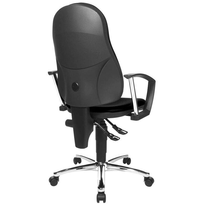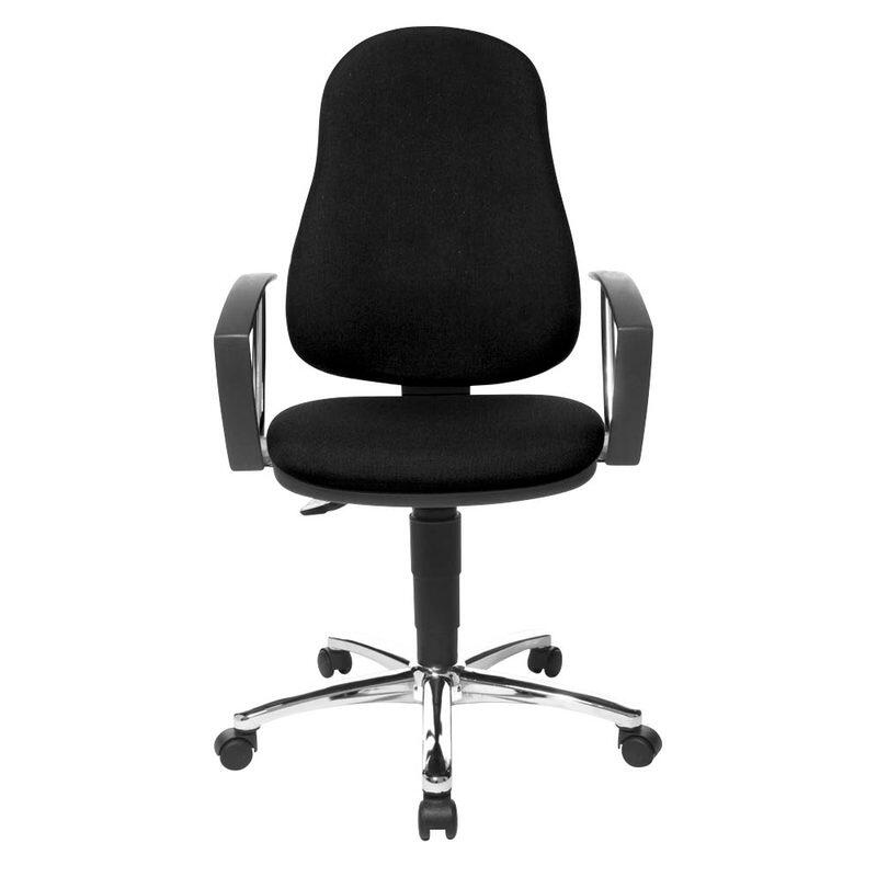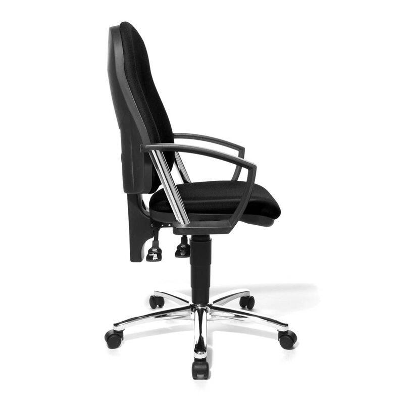 Der Topstar Bürostuhl Point 60 Plus in elegantem Schwarz vereint Funktionalität und Komfort auf höchstem Niveau. Mit einer verstellbaren Sitzhöhe von 40,0 bis 52,0 cm passt sich dieser Stuhl optimal an deine individuellen Bedürfnisse an und fördert eine gesunde Sitzhaltung. Die fest installierten Armlehnen bieten zusätzlichen Halt und tragen zu einem ergonomischen Sitzgefühl bei, ideal für lange Arbeitstage. Die Permanent-Kontakt-Mechanik gewährleistet, dass sich die Rückenlehne flexibel an deine Bewegungen anpasst. Dies unterstützt nicht nur die natürliche Haltung, sondern ermöglicht auch eine dynamische Sitzweise, die Verspannungen und Ermüdung entgegenwirkt. Empfohlen für eine Sitzdauer von bis zu 6 Stunden, ist dieser Stuhl perfekt für das Homeoffice oder das Büro geeignet. Die Doppelrollen sind speziell für Teppichböden konzipiert, was eine mühelose Mobilität und Stabilität auf verschiedenen Untergründen gewährleistet. Das hochwertige Stoffmaterial sorgt für ein angenehmes Sitzgefühl und eine ansprechende Optik, die in jedes moderne Büroambiente passt. Mit dem Topstar Bürostuhl Point 60 Plus schwarz erhältst du nicht nur einen funktionalen Arbeitsplatz, sondern auch ein Möbelstück, das durch sein zeitloses Design besticht und dir dabei hilft, produktiv und komfortabel zu arbeiten.Technische Daten