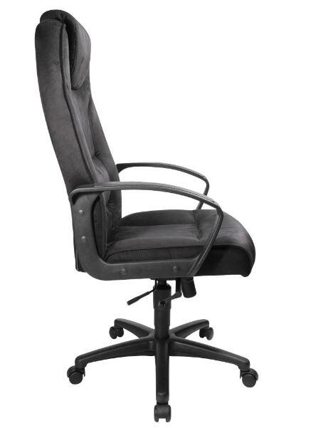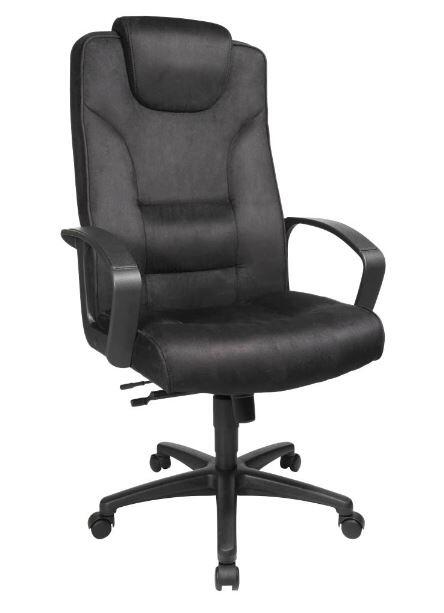 Der Topstar Comfort Point 50 Chefsessel vereint Funktionalität und Komfort auf beeindruckende Weise. Mit seiner stufenlosen Sitzhöhenverstellung, die durch einen hochwertigen Toplift unterstützt wird, lässt sich der Sessel individuell an deine Bedürfnisse anpassen. Die komfortable Wippmechanik sorgt dafür, dass du in jeder Position optimal unterstützt wirst und entspannt arbeiten kannst. Die ergonomische Lendenwirbelausformung und die bequeme Rückenlehne, die mit weichem Stoff bezogen ist, bieten zusätzlichen Komfort, während die integrierte Kopfstütze für eine entspannte Haltung sorgt. Der Muldensitz, der bequem aufgepolstert ist, trägt dazu bei, dass du auch bei längeren Sitzungen angenehm sitzt. Der strapazierfähige Mikrofaserstoff ist nicht nur langlebig, sondern auch pflegeleicht, was den Sessel besonders attraktiv für den täglichen Einsatz macht. Mit einer maximalen Tragfähigkeit von 110 kg ist der Sessel robust und stabil. Das Polyamidfußkreuz in elegantem Schwarz sorgt für die nötige Standfestigkeit und die Sicherheitsdoppelrollen sind speziell für Teppichböden konzipiert, sodass du dich problemlos im Raum bewegen kannst. Die Sitzhöhe lässt sich von 43 cm bis 53 cm variieren, während die Sitzbreite 53 cm und die Sitztiefe 50 cm beträgt. Die Rückenlehne hat eine Höhe von 74 cm, was dir eine angenehme Unterstützung bietet, egal ob du dich zurücklehnst oder aktiv arbeitest. Der Topstar Comfort Point 50 Chefsessel in Anthrazit, gefertigt aus einer Polyester-Baumwolle-Mischung, ist die perfekte Wahl für alle, die Wert auf stilvolles Design und hohen Komfort legen.Technische Daten
