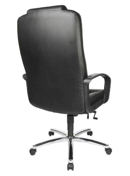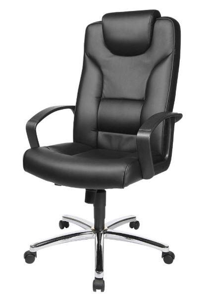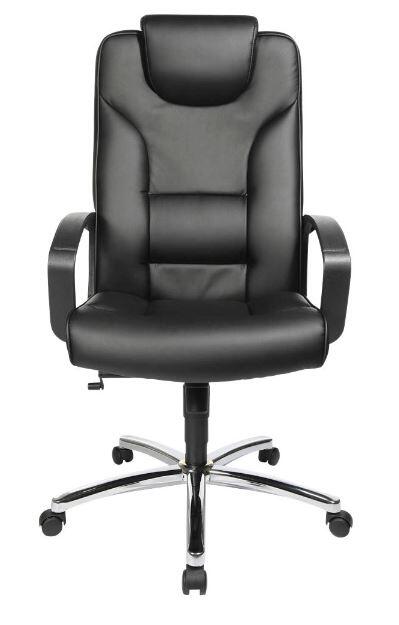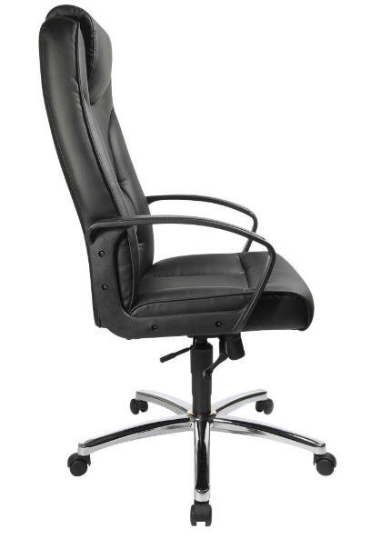 Der Topstar Comfort Point 50 Chefsessel vereint stilvolles Design mit höchstem Komfort und ist die ideale Wahl für anspruchsvolle Nutzer. Mit seiner stufenlosen Sitzhöhenverstellung durch den hochwertigen Toplift kannst du die Höhe des Sessels ganz nach deinen individuellen Bedürfnissen anpassen. Die komfortable Wippmechanik sorgt dafür, dass du auch während längerer Sitzungen eine entspannte Haltung einnehmen kannst. Die ergonomische Lendenwirbel-Ausformung unterstützt die natürliche Krümmung deiner Wirbelsäule und trägt somit zu einem gesunden Sitzverhalten bei. Die bequeme Rückenlehne aus weichem Kunstleder bietet nicht nur einen hohen Sitzkomfort, sondern verleiht dem Sessel auch eine elegante Optik. Die integrierte Kopfstütze sorgt für zusätzliche Entspannung und Unterstützung, besonders bei längeren Arbeitssitzungen. Der Muldensitz ist großzügig gepolstert und mit Kunstleder bezogen, was nicht nur für ein angenehmes Sitzgefühl sorgt, sondern auch die Reinigung erleichtert. Der Sessel ist für ein maximales Gewicht von bis zu 110 kg ausgelegt, was ihn zu einer robusten und langlebigen Wahl macht. Die Abmessungen des Sessels sind durchdacht: die Sitzhöhe lässt sich von 43 bis 53 cm verstellen, die Sitzbreite beträgt 53 cm und die Sitztiefe misst 50 cm. Die Lehnenhöhe von 74 cm unterstützt eine aufrechte Sitzposition. Das verchromte Stahlfußkreuz verleiht dem Sessel nicht nur Stabilität, sondern auch eine ansprechende Optik. Die Sicherheitsdoppelrollen sind speziell für Teppichböden konzipiert und ermöglichen ein müheloses Bewegen des Sessels, ohne den Boden zu beschädigen. Der Topstar Comfort Point 50 Chefsessel ist in elegantem Schwarz gehalten und fügt sich perfekt in jedes Büro- oder Arbeitsumfeld ein.Technische Daten