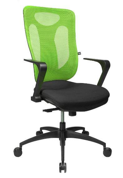 Der Topstar Net Pro 100 Bürodrehstuhl vereint modernes Design mit herausragendem Komfort und Funktionalität. Mit seiner stufenlosen Sitzhöhenverstellung durch den integrierten Toplift passt sich dieser Stuhl optimal an deine individuellen Bedürfnisse an. Besonders hervorzuheben ist der Spezialbandscheibensitz mit Knierolle, der nicht nur für eine ergonomische Sitzhaltung sorgt, sondern auch die Aufrichtung des Beckens unterstützt. Dies fördert eine gesunde Körperhaltung während langer Arbeitstage. Die Rückenlehne des Topstar Net Pro 100 ist mit einem atmungsaktiven Netzbezug ausgestattet, der für eine angenehme Luftzirkulation sorgt und ein Überhitzen auch bei längeren Sitzzeiten verhindert. Die Höhe der Rückenlehne lässt sich bequem per Druckknopf verstellen, sodass du jederzeit die richtige Unterstützung für deinen Rücken findest. Die innovative Punktsynchronmechanik ermöglicht eine synchrone Anpassung der Sitz- und Rückenlehnenneigung, was den Komfort weiter erhöht und die Bewegungsfreiheit während des Arbeitens fördert. Das schwarze Kunststoff-Fußkreuz sorgt für Stabilität und Langlebigkeit, während die Sicherheitsdoppelrollen speziell für Teppichböden konzipiert sind. Dadurch kannst du dich mühelos im Büro bewegen, ohne den Boden zu beschädigen. Der Topstar Net Pro 100 ist nicht nur funktional, sondern auch ästhetisch ansprechend in einem frischen Grünton gehalten, der jedem Büro eine moderne Note verleiht. Dieser Bürodrehstuhl ist die ideale Wahl für alle, die Wert auf Ergonomie und Stil legen. Mit seinen durchdachten Funktionen und dem ansprechenden Design verbessert er nicht nur deinen Sitzkomfort, sondern auch deine Produktivität am Arbeitsplatz.Technische Daten