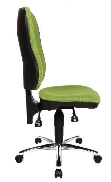 Der Topstar Steel Point 80 Bürodrehstuhl vereint modernes Design und hohe Funktionalität, um dir ein optimales Sitzerlebnis zu bieten. Mit seiner stufenlosen Sitzhöhenverstellung durch den Toplift passt sich der Stuhl individuell an deine Bedürfnisse an. Dies ermöglicht dir, die perfekte Sitzposition zu finden, um auch an langen Arbeitstagen komfortabel und gesund zu sitzen. Die extra hohe Rückenlehne ist mit einer speziellen Wirbelsäulenausformung ausgestattet, die deine Wirbelsäule optimal unterstützt und so Rückenbeschwerden vorbeugt. Der große, komfortable Spezial-Muldensitz mit Beckenstütze sorgt dafür, dass du auch über mehrere Stunden hinweg bequem sitzen kannst. Die Komfort-Permanentkontaktmechanik ermöglicht es dir, die Rückenlehne flexibel zu nutzen und dich bei Bedarf zurückzulehnen, ohne die Sitzposition zu verändern. Das verchromte Stahl-Fußkreuz verleiht dem Stuhl nicht nur eine ansprechende Optik, sondern sorgt auch für Stabilität und Langlebigkeit. Die Sicherheitsdoppelrollen sind speziell für Teppichböden konzipiert, was dir eine sichere und mühelose Bewegung ermöglicht, ohne den Boden zu beschädigen. Der Topstar Steel Point 80 ist nicht nur funktional, sondern auch in einem ansprechenden Grünton gehalten, der jedem Büro einen frischen Akzent verleiht. Die Verwendung von hochwertigem Stoff und robustem Stahl garantiert, dass dieser Bürodrehstuhl sowohl stilvoll als auch langlebig ist. Dieser Stuhl ist die ideale Wahl für alle, die Wert auf ergonomisches Sitzen und ansprechendes Design legen. Mit dem Topstar Steel Point 80 Bürodrehstuhl investierst du in deine Gesundheit und deinen Komfort am Arbeitsplatz.Technische Daten