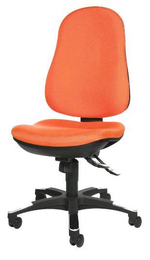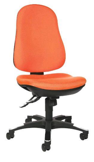 Der Topstar Trend SY 10 Drehstuhl vereint modernes Design mit herausragendem Komfort und Funktionalität. Mit seiner stufenlosen Sitzhöhenverstellung durch den Toplift passt sich dieser Stuhl perfekt an deine individuellen Bedürfnisse an. Die Sicherheitsdoppelrollen sind speziell für Teppichböden konzipiert, sodass du dich mühelos bewegen kannst, ohne den Boden zu beschädigen. Dieser Drehstuhl bietet eine maximale Tragkraft von 110 kg und ist für Personen mit einer Körpergröße von bis zu 1,92 m geeignet. Er ist ideal für eine tägliche Nutzung von bis zu 8 Stunden, was ihn zur perfekten Wahl für Büroarbeit oder Homeoffice macht. Die hohe Rückenlehne ist ergonomisch gestaltet und bietet eine Ausformung im Lendenwirbelbereich, die eine optimale Unterstützung für deinen Rücken gewährleistet. Darüber hinaus ist die Rückenlehne höhenverstellbar, sodass du sie individuell anpassen kannst. Ein weiteres Highlight des Topstar Trend SY 10 ist der Spezial-Bandscheibensitz, der eine hervorragende Abstimmung im Beckenbereich bietet und somit Rückenschmerzen vorbeugt. Die Punktsynchronmechanik ermöglicht dir eine einfache Verstellung der Sitz- und Rückenlehnenneigung, sodass du während deiner Arbeit die perfekte Sitzposition finden kannst. Der Stuhl ist in einem ansprechenden Orange gehalten und besteht aus strapazierfähigem Polypropylen. Das Kunststoff-Fußkreuz sorgt für zusätzliche Stabilität und Langlebigkeit. Der Topstar Trend SY 10 Drehstuhl ist nicht nur funktional, sondern auch ein stilvolles Möbelstück, das jedem Arbeitsplatz einen modernen Akzent verleiht.Technische Daten