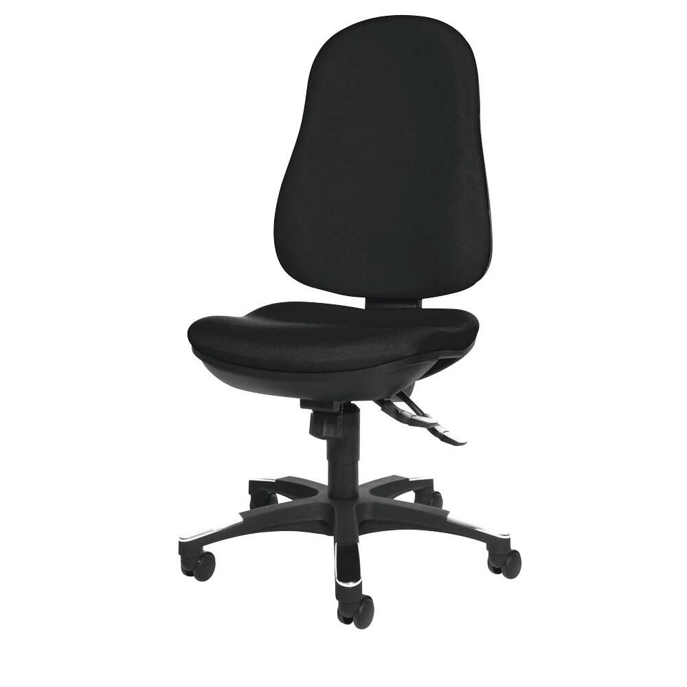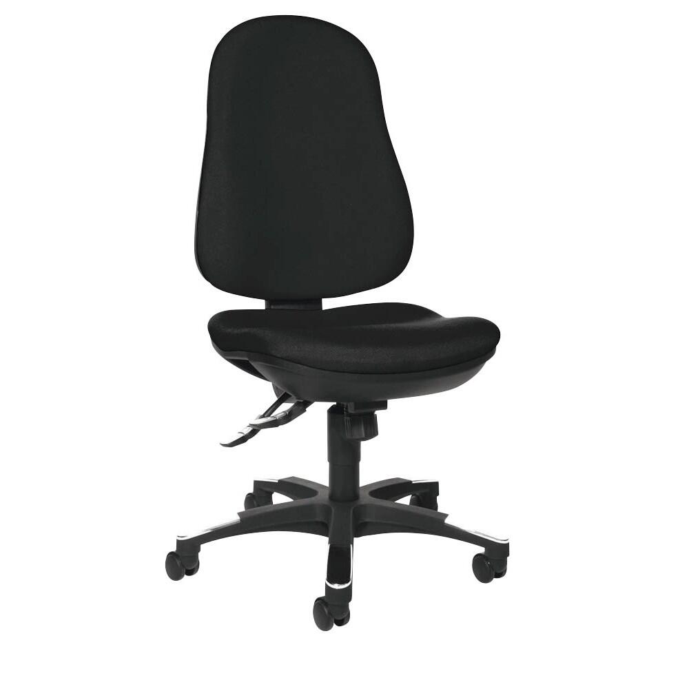 Der Topstar Trend SY 10 Drehstuhl vereint modernes Design mit ergonomischen Vorteilen, die Deinen Arbeitsalltag erheblich verbessern können. Mit einer stufenlosen Sitzhöhenverstellung durch das praktische Toplift-System lässt sich der Stuhl optimal an Deine Körpergröße anpassen, was für eine gesunde Sitzhaltung sorgt. Die Sicherheitsdoppelrollen sind speziell für Teppichböden konzipiert und gewährleisten sowohl Stabilität als auch Mobilität, sodass Du Dich leicht im Raum bewegen kannst. Dieser Drehstuhl ist für ein maximales Gewicht von 110 kg ausgelegt und eignet sich ideal für Personen mit einer Körpergröße von bis zu 1,92 m. Mit einer empfohlenen Nutzungsdauer von bis zu 8 Stunden pro Tag ist der Topstar Trend SY 10 perfekt für lange Arbeitstage im Büro oder Homeoffice. Die hohe Rückenlehne ist nicht nur ergonomisch geformt, sondern auch höhenverstellbar, um den Lendenwirbelbereich optimal zu unterstützen und Rückenschmerzen vorzubeugen. Ein weiteres Highlight ist der Spezial-Bandscheibensitz, der eine ausgezeichnete Unterstützung im Beckenbereich bietet. Dies trägt dazu bei, dass Du auch bei längeren Sitzzeiten bequem und entspannt bleibst. Die Punktsynchronmechanik ermöglicht es Dir, die Neigung von Sitz- und Rückenlehne individuell anzupassen, was zusätzlichen Komfort und Flexibilität bietet. Der Topstar Trend SY 10 ist in elegantem Schwarz gehalten und besteht aus robustem Polypropylen mit einem stabilen Kunststoff-Fußkreuz. Dies macht ihn nicht nur funktional, sondern auch optisch ansprechend für jedes moderne Büro. Mit diesem Drehstuhl investierst Du in Deine Gesundheit und Deinen Komfort während der Arbeit.Technische Daten