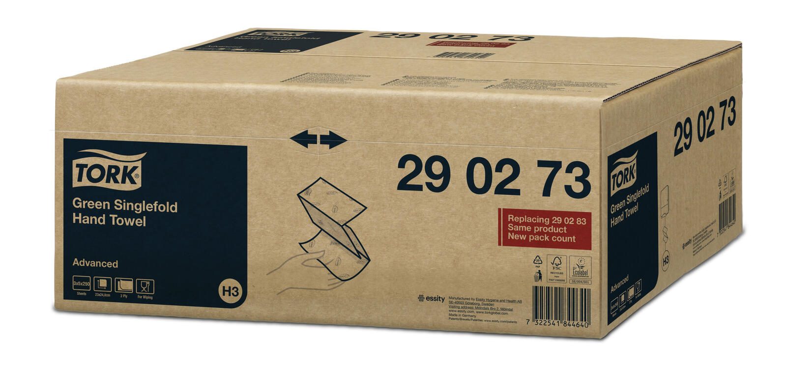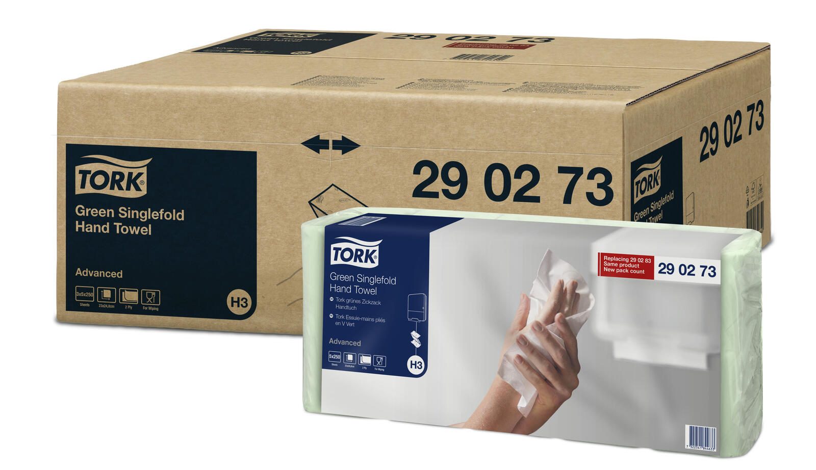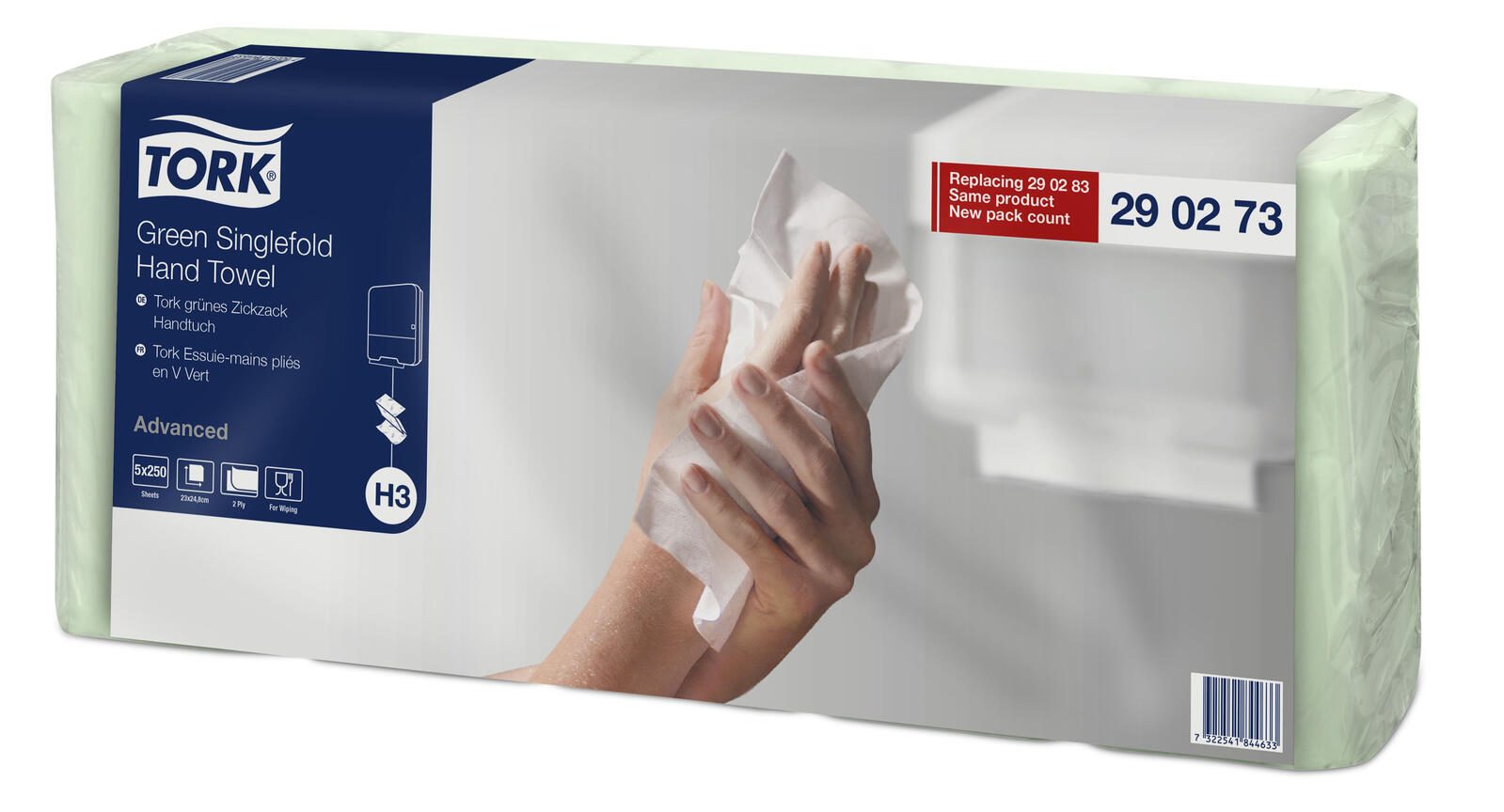 Die TORK Papierhandtücher Advanced H3 C&C 2-lagig in einem ansprechenden Grünton bieten eine hervorragende Lösung für alle, die Wert auf Qualität und Umweltfreundlichkeit legen. Diese Papierhandtücher bestehen aus hochwertigem Recyclingpapier und sind somit eine nachhaltige Wahl für dein Zuhause oder dein Unternehmen. Mit einer Blattgröße von 23,0 x 24,8 cm sind sie ideal für den täglichen Gebrauch und bieten eine großzügige Fläche, um Hände und Oberflächen effektiv zu trocknen. Das durchdachte Zick-Zack-Falzdesign ermöglicht eine einfache Entnahme der Tücher aus dem H3-Spendersystem, das für eine effiziente Nutzung konzipiert wurde. Die 2-lagige Struktur sorgt für zusätzliche Festigkeit und Saugfähigkeit, was bedeutet, dass du weniger Tücher benötigst, um die gleiche Reinigungsleistung zu erzielen. Dies reduziert nicht nur den Abfall, sondern schont auch deinen Geldbeutel. Mit insgesamt 3.750 Tüchern pro Karton bist du bestens ausgestattet, um den Bedarf in stark frequentierten Bereichen zu decken. Die hochwertige Papierqualität garantiert, dass die Tücher auch bei intensiver Nutzung nicht reißen oder zerfallen. Der dezente Aufdruck fügt sich harmonisch in jede Umgebung ein und unterstreicht die Professionalität deines Unternehmens. Die TORK Papierhandtücher Advanced H3 C&C sind nicht nur praktisch, sondern tragen auch zur Reduzierung des ökologischen Fußabdrucks bei. Durch die Verwendung von Recyclingpapier leistest du einen Beitrag zum Umweltschutz, ohne auf Komfort und Effizienz verzichten zu müssen. Diese Papierhandtücher sind die ideale Wahl für alle, die sich für Nachhaltigkeit und Qualität entscheiden.Technische Daten