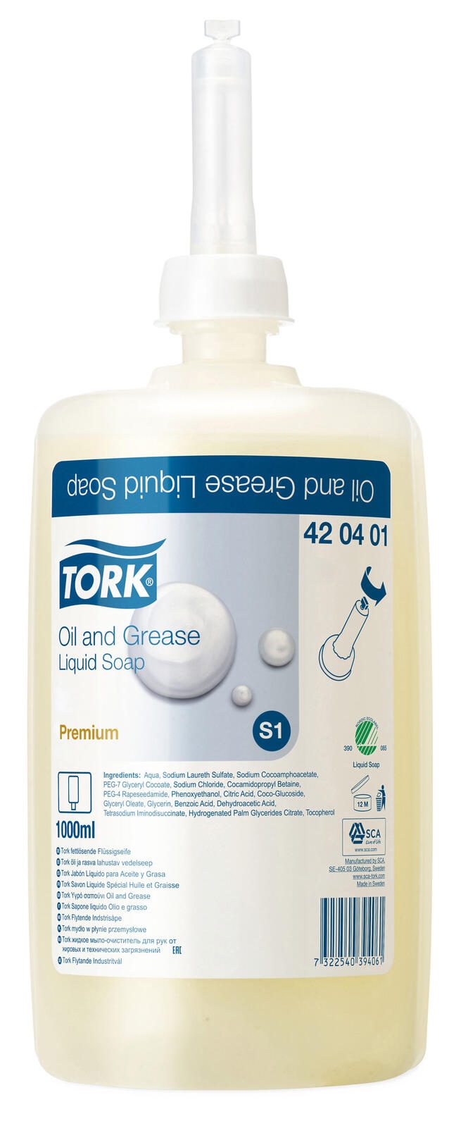 Die TORK Premium Industrie Flüssigseife 1,0 l ist die ideale Lösung für eine gründliche und sanfte Handreinigung in gewerblichen Einrichtungen. Mit einem neutralen Duft und einem pH-Wert von 5,0 bis 5,5 sorgt diese Flüssigseife für ein angenehmes Hautgefühl und ist besonders hautverträglich. Die farblose Formel ermöglicht eine vielseitige Anwendung, ohne Rückstände zu hinterlassen. Die TORK Premium Industrie Flüssigseife ist speziell für die Verwendung mit TORK Seifenspendern konzipiert, was eine einfache Handhabung und optimale Dosierung gewährleistet. Sie kommt in einer praktischen Nachfüllflasche, die eine hygienische Entnahme und eine saubere Anwendung ermöglicht. Die Flüssigseife ist nicht parfümiert, was sie zur perfekten Wahl für empfindliche Nasen macht, die auf starke Düfte reagieren. Mit einem Inhalt von 1,0 l bietet diese Flüssigseife eine langanhaltende Nutzung, die sich ideal für stark frequentierte Bereiche eignet. Die sorgfältig ausgewählten Inhaltsstoffe reinigen die Hände effektiv, während sie gleichzeitig die Haut pflegen und schützen. Die TORK Premium Industrie Flüssigseife ist eine ausgezeichnete Wahl für Unternehmen, die Wert auf Hygiene und Qualität legen. Sie unterstützt nicht nur die Einhaltung von Hygienestandards, sondern sorgt auch dafür, dass die Haut nach jedem Waschen geschmeidig bleibt. Vertraue auf die Qualität von TORK und erlebe den Unterschied in der Handreinigung.Technische Daten
