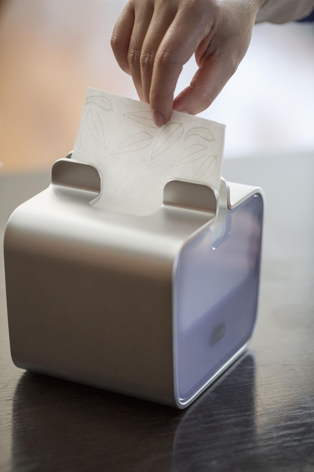 - freistehend, ohne Inhalt, für Einzeltuchentnahme