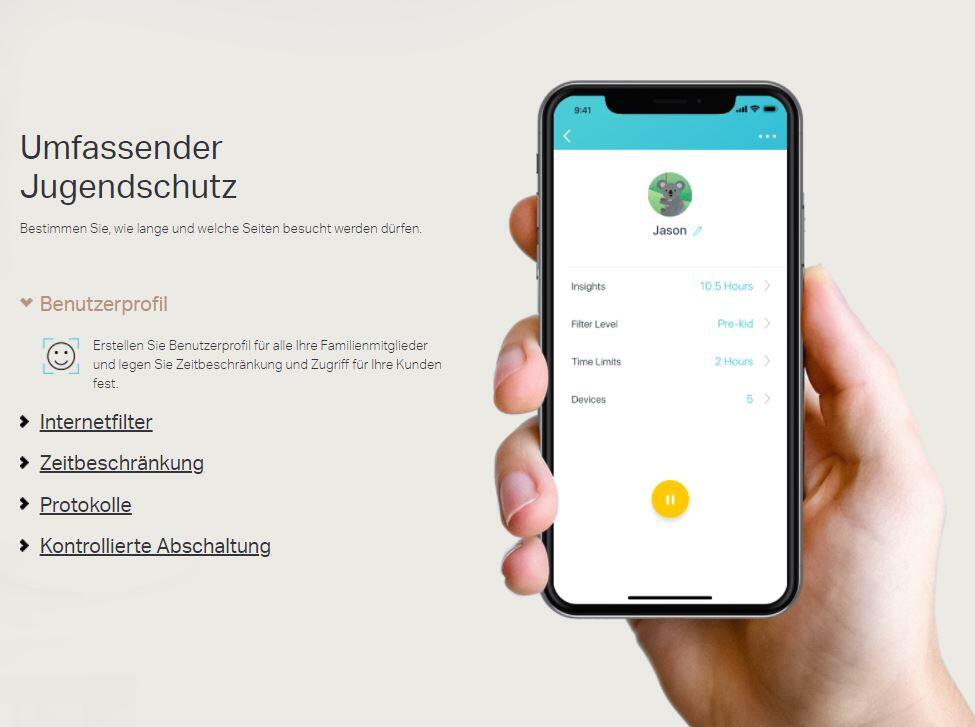 - Der umfassende Jugendschutz ermöglicht Ihnen eine sichere WLAN-Erfahrung für alle Ihre Familienmitglieder.