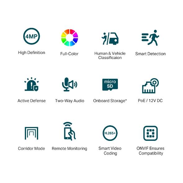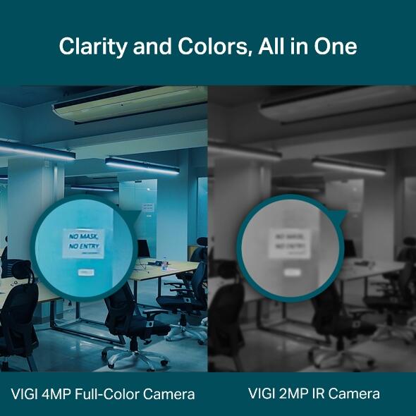 Überwachen Sie rund um die Uhr klare und farbenfrohe Details, selbst in stockfinsterer Nacht. Die VIGI-Vollfarbkamera bietet eine Auflösung von maximal 4 MP und sorgt mit ihrem Objektiv mit großer Blendenöffnung, dem hochempfindlichen Sensor und den angeschlossenen Zusatzleuchten für eine farbenfrohe Überwachung.