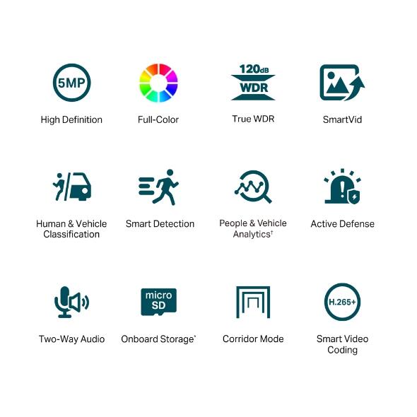 Überwachen Sie rund um die Uhr klare und farbenfrohe Details, selbst in stockfinsterer Nacht. Die VIGI-Vollfarbkamera bietet eine maximale Auflösung von 5 MP und sorgt mit ihrem lichtstarken Objektiv, dem hochempfindlichen Sensor und den angeschlossenen Zusatzleuchten für eine farbenfrohe Überwachung.