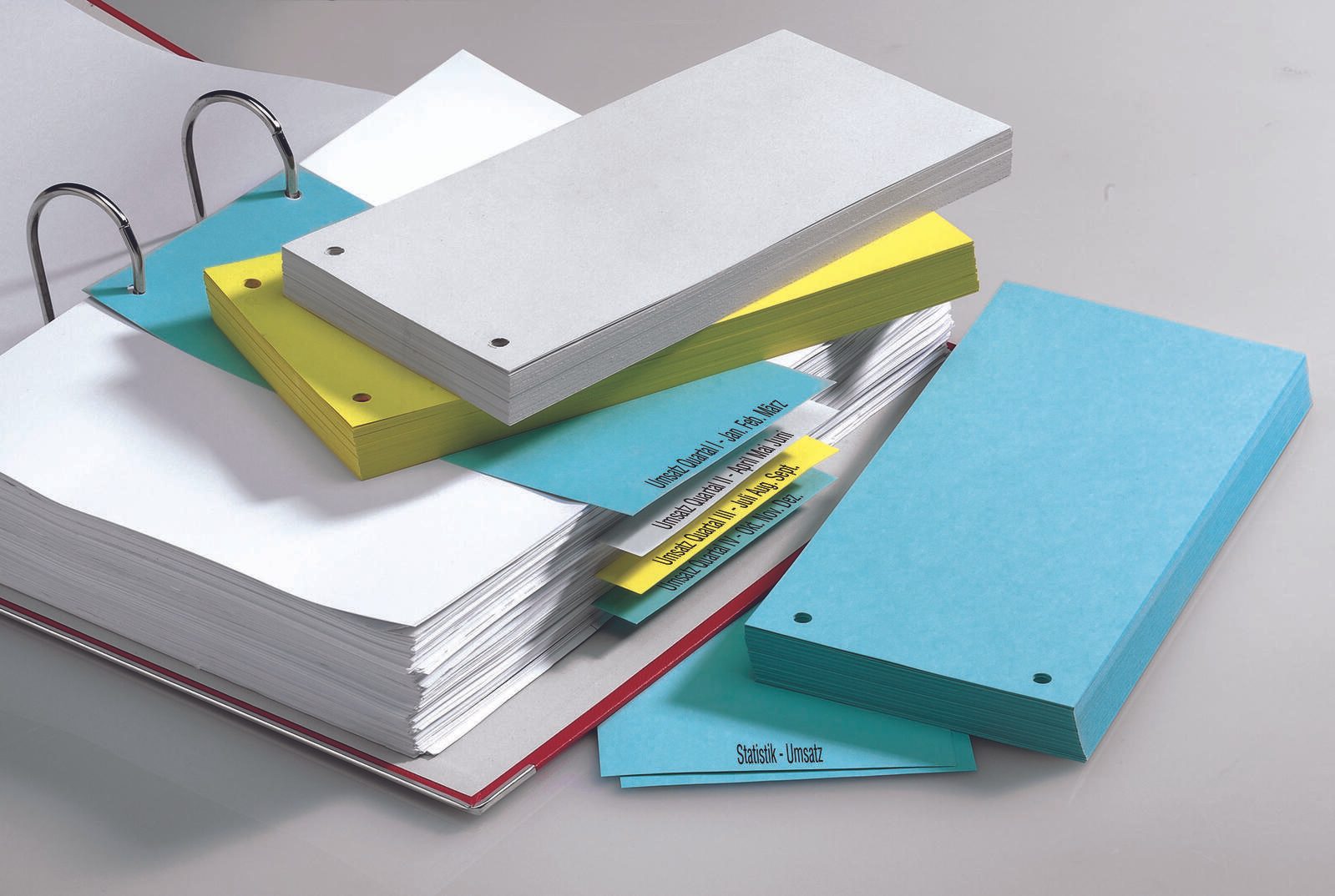 Die dots Trennstreifen in leuchtendem Gelb sind die ideale Lösung, um Ordnung und Übersichtlichkeit in deinen Unterlagen zu schaffen. Mit einem Papiergewicht von 130 g/m² bieten diese Trennstreifen nicht nur eine hohe Stabilität, sondern auch eine ansprechende Haptik, die sie zu einem unverzichtbaren Hilfsmittel in jedem Büro oder Zuhause macht. Die rechteckige Form mit den Maßen 23,0 x 10,5 cm ermöglicht es dir, die Trennstreifen mühelos in Aktenordnern oder Mappen zu verwenden. Dank der praktischen 2-fach-Lochung lassen sich die Streifen einfach und schnell einfügen, sodass du deine Dokumente nach Themen oder Projekten sortieren kannst. Die lebendige gelbe Farbe sorgt dafür, dass wichtige Informationen sofort ins Auge fallen und erleichtert das schnelle Finden von benötigten Unterlagen. Diese Trennstreifen aus hochwertigem Karton sind nicht nur funktional, sondern auch ästhetisch ansprechend und tragen dazu bei, dass dein Arbeitsplatz ordentlich und strukturiert wirkt. Mit einer Packung von 100 Stück bist du bestens ausgestattet, um deine Dokumente effizient zu organisieren. Die dots Trennstreifen sind ein unverzichtbares Zubehör für Studierende, Berufstätige und alle, die Wert auf eine gut strukturierte Ablage legen. Vertraue auf die Qualität von dots und erlebe, wie einfach es ist, Ordnung zu halten.Technische Daten