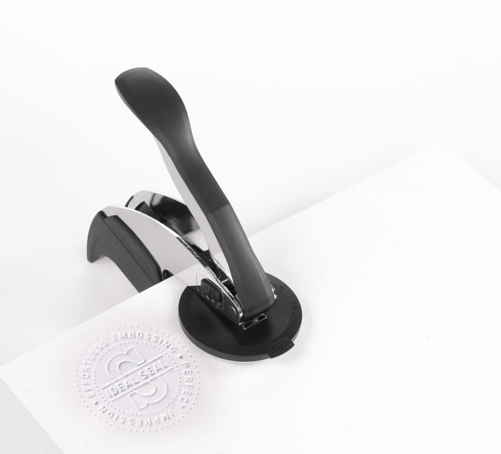 Die Abdruckfarbe des Textes ist in einem eleganten Grauton gehalten, der für eine professionelle und ansprechende Optik sorgt. Dank der individuell gestaltbaren Textplatte kannst du deiner Kreativität freien Lauf lassen und das Prägegerät ganz nach deinen Wünschen anpassen.