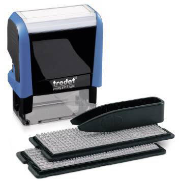 Die Lieferung des trodat Textstempels, individualisierbar printy 4912 Typo erfolgt inklusive 2 verschiedenen Buchstaben- und Ziffern-Sets mit 3,0 mm und 4,0 mm Schrifthöhe, 1 Pinzette. Bestellen können Sie den trodat Textstempel, individualisierbar printy 4912 Typo selbstfärbend schwarz ohne Logo ganz unkompliziert hier bei uns im Online-Shop!