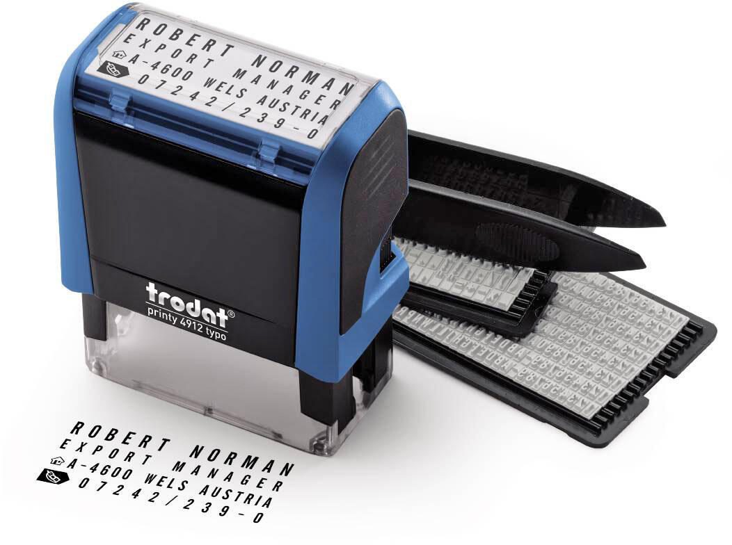 Mit dem trodat Textstempel, individualisierbar printy 4912 Typo selbstfärbend schwarz ohne Logo bringen Sie Ihre Botschaft auf den Punkt