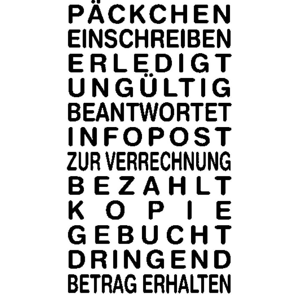 KOPIE, BEZAHLT, GEBUCHT, BEANTWORTET, ERLEDIGT, EINSCHREIBEN, PÄCKCHEN, UNGÜLTIG, INFOPOST, ZUR VERRECHNUNG, DRINGEND, BETRAG ERHALTEN