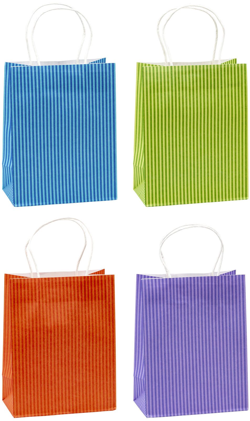 Diese Geschenktüten der Serie STREIFEN von TSI sind in den Farben blau, grün, orange und lila erhältlich. Mit den Maßen 18,0 x 23,0 cm bieten sie ausreichend Platz für kleine bis mittelgroße Geschenke. Die Packung enthält insgesamt 12 Tüten.