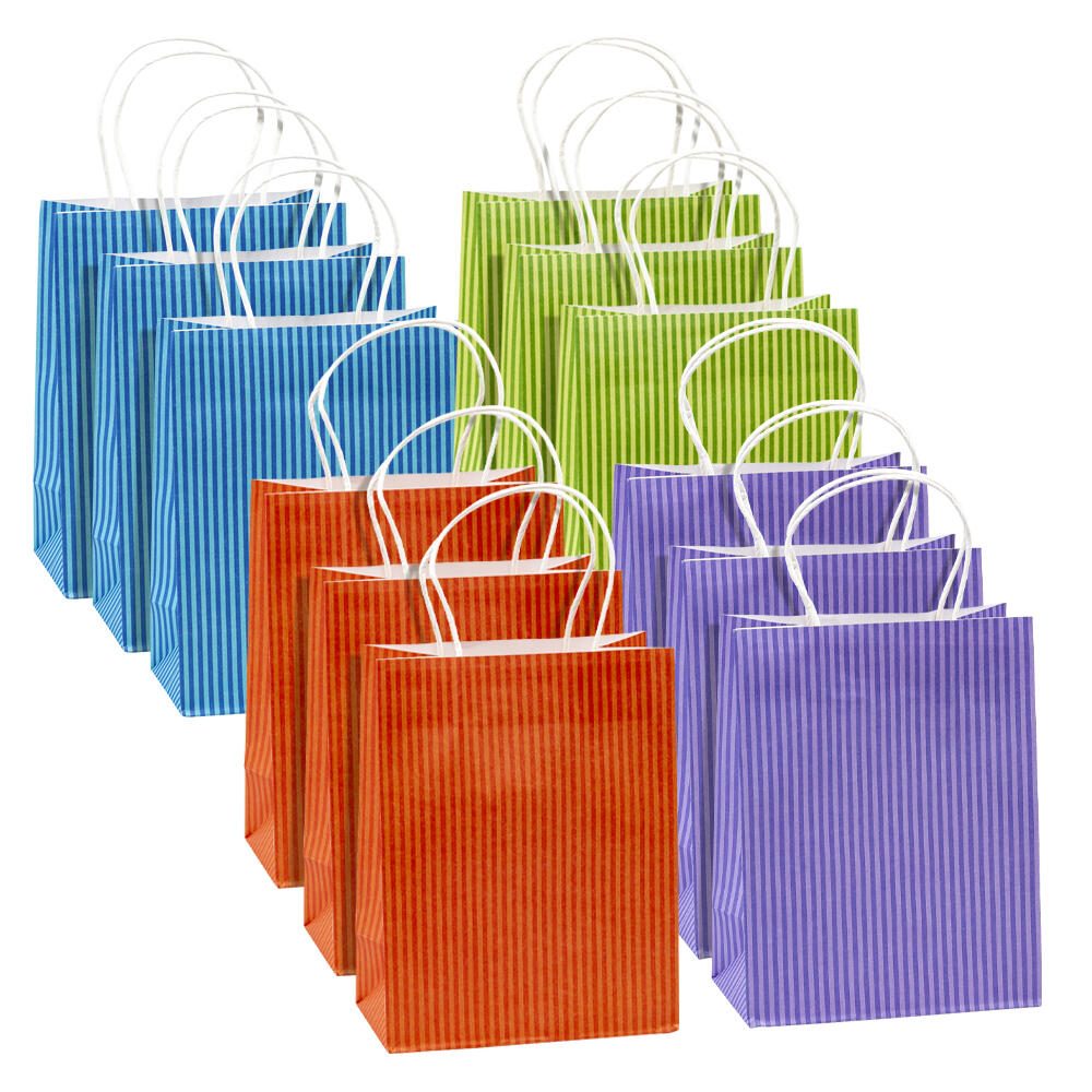 TSI Geschenktüten STREIFEN blau,grün, orange, lila 18,0 x 23,0 cm, 12 St.