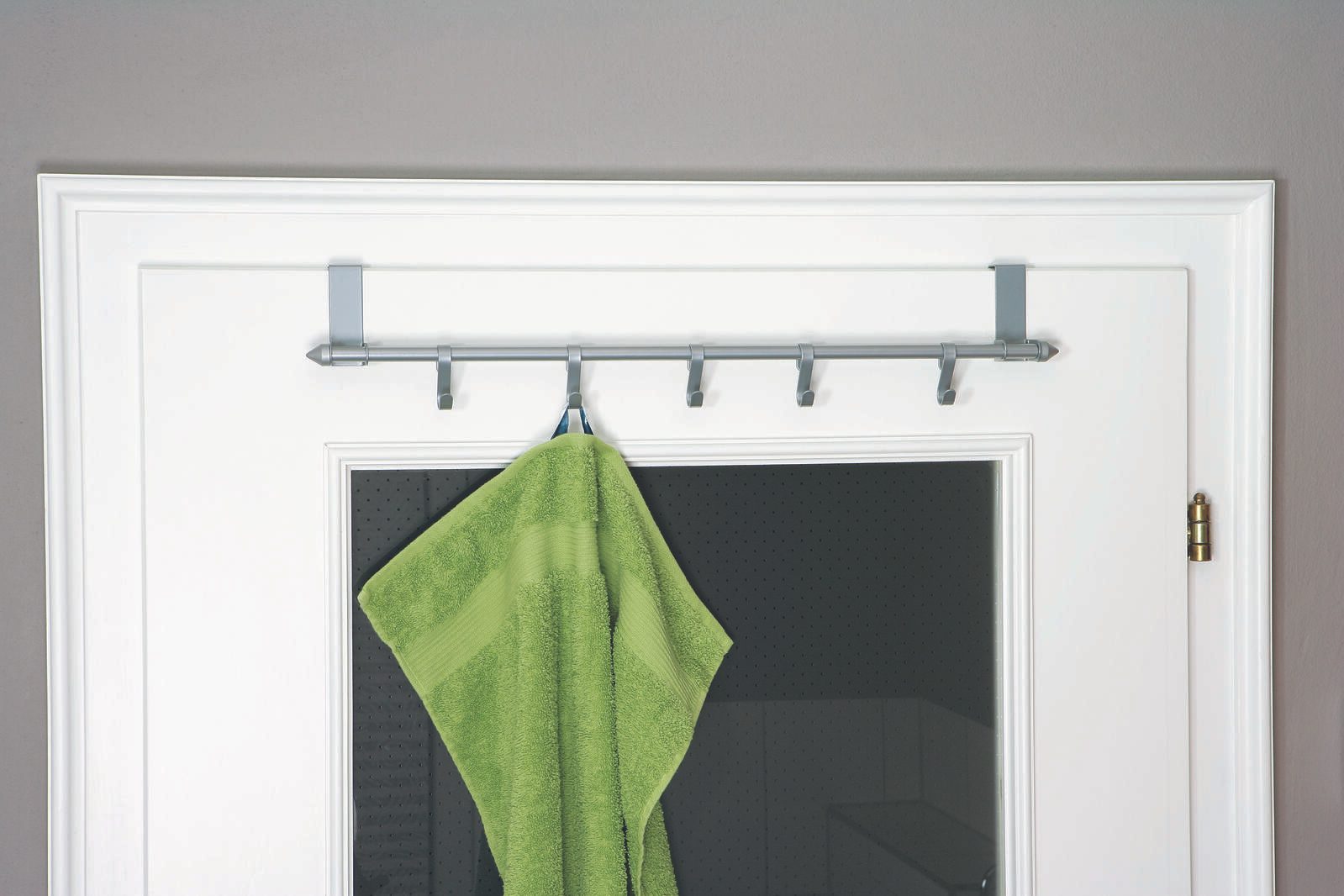 Mit ihren 5 Haken bietet diese Türgarderobe ausreichend Platz für Jacken, Mäntel, Schals, Handtaschen und mehr. Der Farbton Silber verleiht ihr ein modernes Aussehen, das zeitlos und elegant ist. Ob im Schlafzimmer, Flur oder Büro – diese Türgarderobe sorgt für Ordnung und erleichtert dir den Alltag.