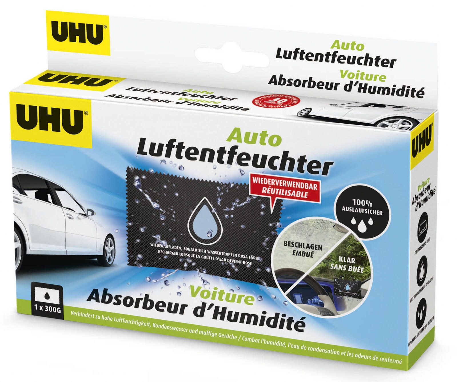Der UHU Auto-Entfeuchter in elegantem Schwarz ist die ideale Lösung, um übermäßige Feuchtigkeit in Ihrem Fahrzeug zu reduzieren. Dieses praktische Luftentfeuchtungsgerät sorgt nicht nur für ein angenehmes Raumklima, sondern schützt auch Ihr Auto vor Schimmelbildung und unangenehmen Gerüchen. Der neutrale Duft stellt sicher, dass keine störenden Aromen zurückbleiben, sodass Sie sich ganz auf die Fahrt konzentrieren können.