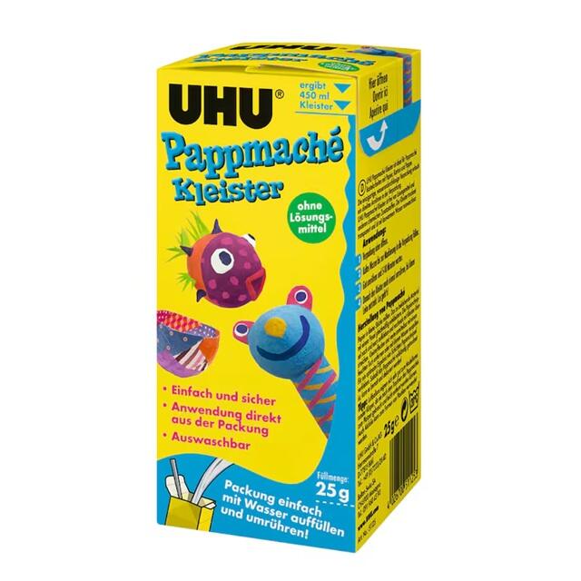 Vertraue auf die Marke UHU, die für ihre zuverlässigen und hochwertigen Bastelprodukte bekannt ist. Mit dem UHU Pappmaché Kleister kannst du dich ganz auf deine Kreativität konzentrieren, denn dieser Kleister unterstützt dich zuverlässig bei der Umsetzung deiner Ideen.