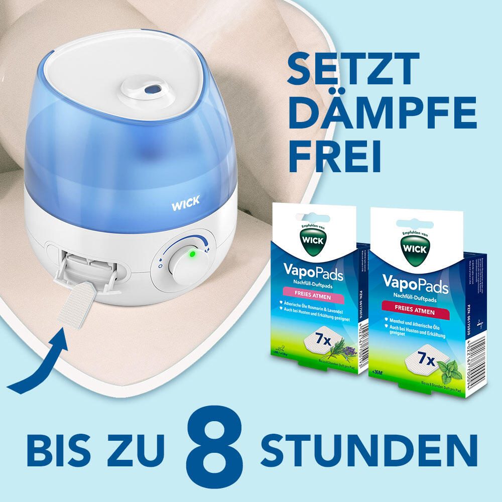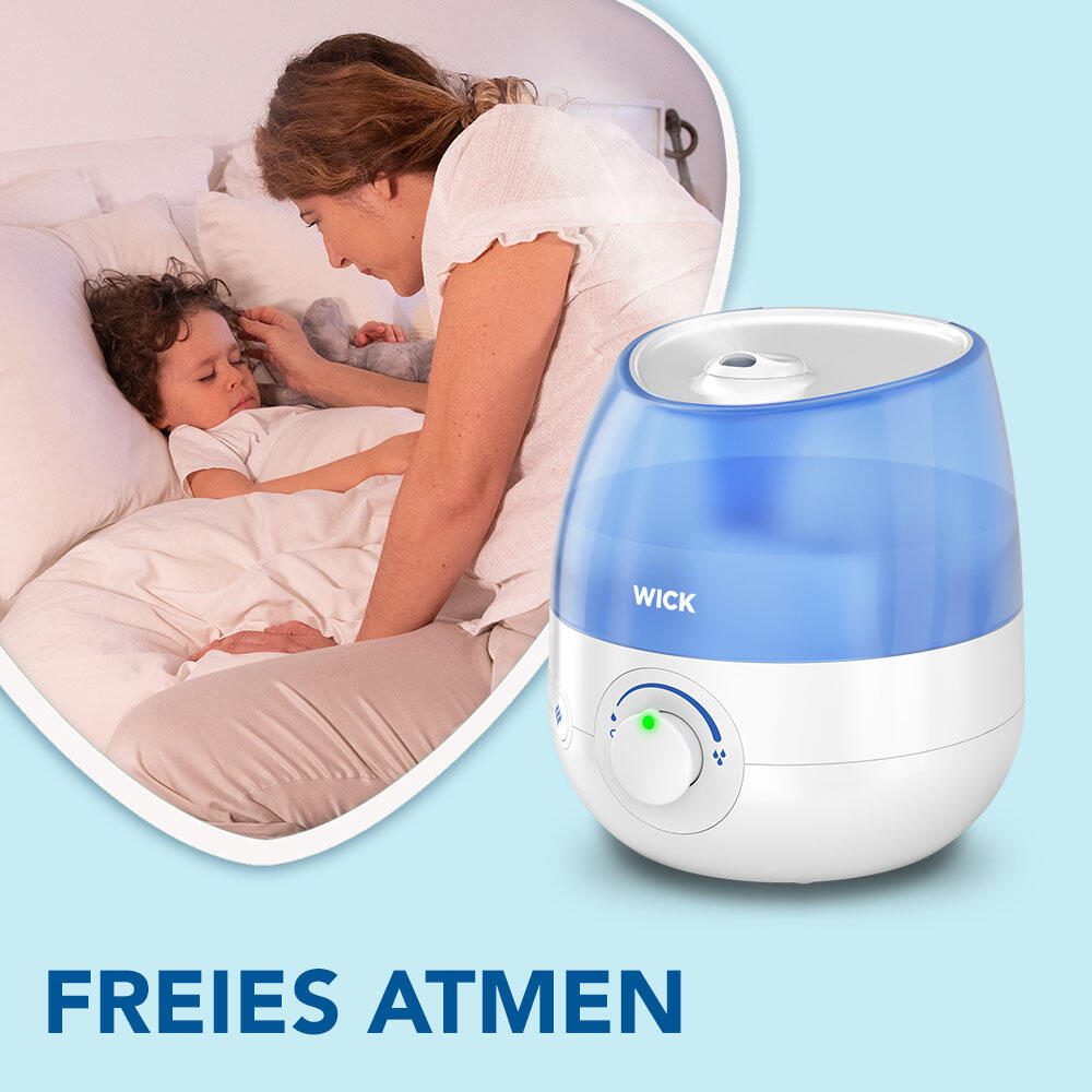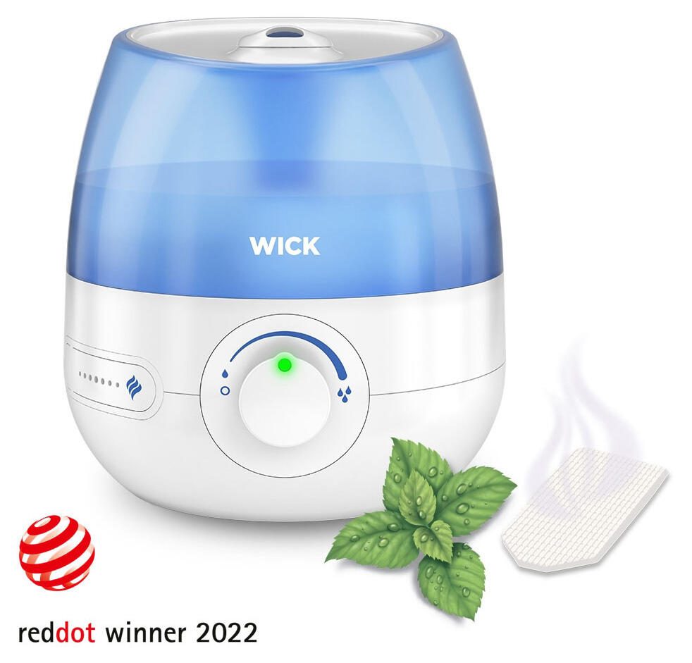 Das moderne Design in Weiß und Blau macht den WICK Luftbefeuchter nicht nur zu einem funktionalen Gerät, sondern auch zu einem stilvollen Accessoire in deinem Zuhause. Egal ob im Wohnzimmer, Schlafzimmer oder Büro - dieser Luftbefeuchter fügt sich nahtlos in jede Umgebung ein.