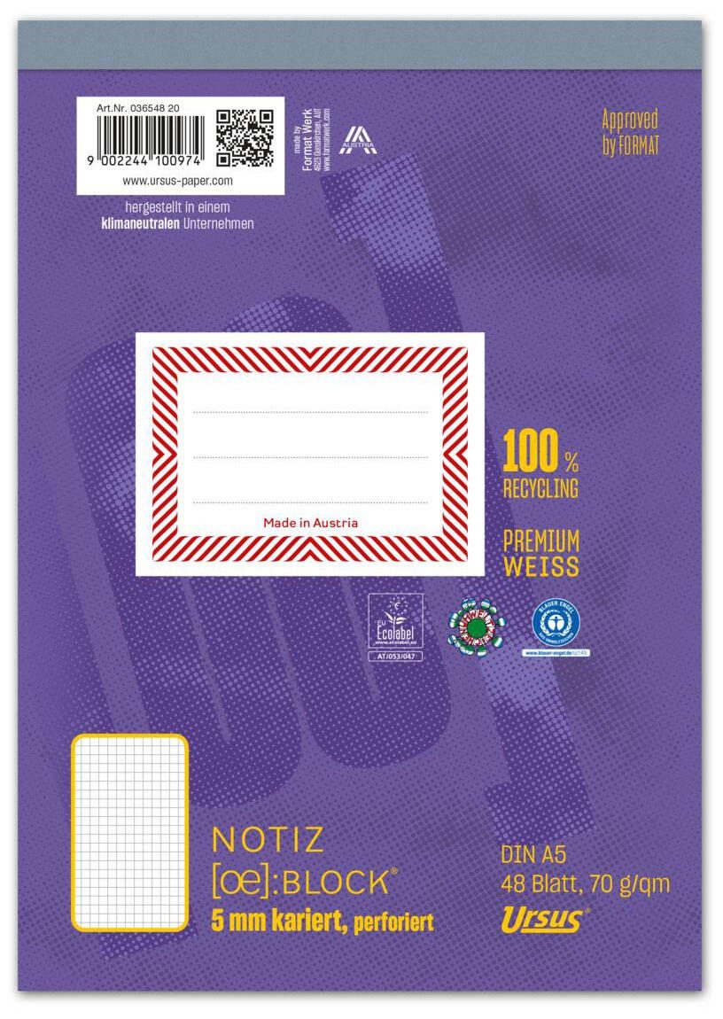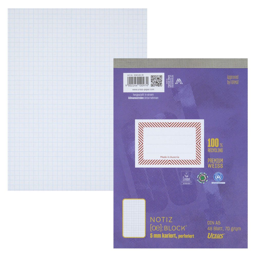 Der Ursus Notizblock DIN A5 kariert ist der ideale Begleiter für Schule, Studium oder Büro. Mit 48 Blatt bietet er ausreichend Platz für deine Notizen, Skizzen und Ideen. Das hochwertige Papier mit einem Gewicht von 70 g/m² sorgt für ein angenehmes Schreibgefühl und ist gleichzeitig robust genug, um auch intensiven Einsatz standzuhalten. Die karierte Lineatur ermöglicht dir eine präzise und strukturierte Gestaltung deiner Aufzeichnungen. Egal, ob du mathematische Formeln, Diagramme oder kreative Entwürfe festhalten möchtest, die Karos helfen dir, alles ordentlich und übersichtlich zu halten. Der Block kommt ohne Rand daher, was dir die Freiheit gibt, den gesamten Platz optimal zu nutzen. Ein besonderes Merkmal des Ursus Notizblocks ist, dass er aus chlorfreiem Recycling-Papier (PCF) hergestellt wird. Dies macht ihn nicht nur umweltfreundlich, sondern auch holzfrei, was einen weiteren Pluspunkt für umweltbewusste Nutzer darstellt. Die Verwendung von Recyclingmaterialien trägt dazu bei, Ressourcen zu schonen und die Umweltbelastung zu reduzieren. Die flexible Bindung ermöglicht es dir, den Block ganz einfach umzublättern und die Seiten bis zur letzten Notiz zu nutzen. Zudem ist der Notizblock mit einer praktischen Microperforation ausgestattet, die das Abreißen von Blättern erleichtert, falls du deine Notizen teilen oder abgeben möchtest. Mit seiner kompakten Größe im DIN A5 Format passt der Ursus Notizblock problemlos in jede Tasche oder jeden Rucksack. So hast du ihn immer griffbereit, egal wo du dich befindest. Der Notizblock in klassischem Weiß ist nicht nur funktional, sondern auch stilvoll und anpassungsfähig für jede Art von Nutzung.