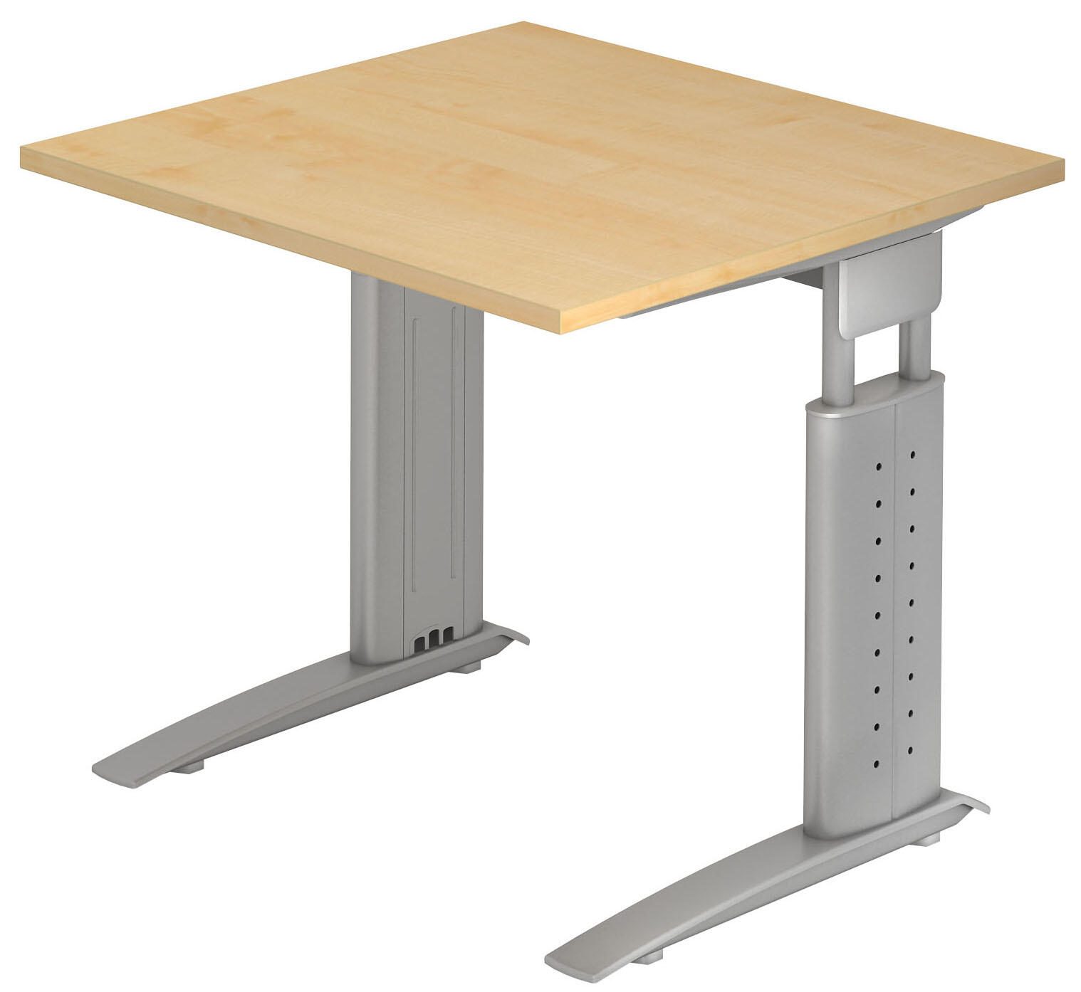 Der HAMMERBACHER höhenverstellbare Schreibtisch VUS08/3/S in edlem Ahorn-Design vereint Funktionalität und modernes Design in einem Produkt. Die Tischplatte aus hochwertiger Spanplatte bietet eine großzügige Fläche von 80 cm x 80 cm, ideal für verschiedene Arbeitsaufgaben oder kreative Projekte. Das stabile C-Fuß-Gestell aus robustem Stahl sorgt für eine hohe Standfestigkeit und Langlebigkeit. Mit der silbernen Farbgebung des Gestells harmoniert der Schreibtisch perfekt mit verschiedenen Einrichtungsstilen und setzt gleichzeitig elegante Akzente in Ihrem Arbeitsbereich. Ein herausragendes Merkmal dieses Schreibtisches ist die Höhenverstellbarkeit, die es Ihnen ermöglicht, die Tischhöhe nach Ihren individuellen Bedürfnissen anzupassen. Dies fördert nicht nur eine ergonomische Arbeitsweise, sondern unterstützt auch die Gesundheit, indem es Ihnen die Möglichkeit gibt, zwischen Sitzen und Stehen zu wechseln. Der HAMMERBACHER Schreibtisch ist ideal für Homeoffice, Büros oder kreative Arbeitsräume. Er bietet ausreichend Platz für Computer, Unterlagen und weitere Arbeitsmaterialien, während das ansprechende Ahorn-Finish eine warme und einladende Atmosphäre schafft. Mit einem Gesamtmaß von 80 cm in der Breite und Tiefe sowie einer Höhe von 68 cm passt dieser Schreibtisch in nahezu jeden Raum und lässt sich flexibel in bestehende Möbel integrieren. Die einfache Montage und Pflege machen ihn zu einer praktischen Wahl für alle, die Wert auf Qualität und Design legen. Erleben Sie die Vorteile eines höhenverstellbaren Schreibtisches, der nicht nur funktional, sondern auch ästhetisch ansprechend ist. Der HAMMERBACHER VUS08/3/S ist die perfekte Ergänzung für Ihr Arbeitsumfeld und unterstützt Sie dabei, produktiv und gesund zu arbeiten.Technische Daten