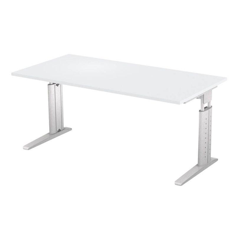 Der HAMMERBACHER höhenverstellbare Schreibtisch VUS16/5/S in lichtgrau ist die ideale Lösung für alle, die Wert auf Ergonomie und Flexibilität am Arbeitsplatz legen. Mit einer großzügigen Tischplatte aus Spanplatte und einem stabilen C-Fuß-Gestell aus Stahl bietet dieser Schreibtisch nicht nur eine ansprechende Optik, sondern auch eine robuste Konstruktion, die den täglichen Anforderungen standhält. Die elegante lichtgraue Farbgebung sorgt für eine moderne und freundliche Atmosphäre in jedem Büro oder Home Office. Mit den Maßen von 160 cm in der Breite, 80 cm in der Tiefe und 68 cm in der Höhe passt der Schreibtisch optimal in verschiedene Raumkonzepte und lässt sich harmonisch mit anderen Möbelstücken kombinieren. Ein herausragendes Merkmal des VUS16/5/S ist die Höhenverstellbarkeit, die es Ihnen ermöglicht, die Tischhöhe individuell anzupassen. Dies fördert nicht nur eine gesunde Körperhaltung, sondern steigert auch die Produktivität, indem Sie zwischen Sitzen und Stehen wechseln können. Die Möglichkeit, die Höhe nach Ihren Wünschen zu variieren, ist besonders vorteilhaft für lange Arbeitstage, da sie Verspannungen und Ermüdungserscheinungen vorbeugt. Die schlichte und funktionale Gestaltung ohne Fächer oder Schübe bietet Ihnen viel Platz für Ihre Arbeitsutensilien und sorgt gleichzeitig für eine aufgeräumte Optik. Das silberne Gestell unterstreicht den modernen Look und bringt eine zeitlose Eleganz in Ihr Arbeitsumfeld. Mit dem HAMMERBACHER höhenverstellbaren Schreibtisch VUS16/5/S entscheiden Sie sich für ein Möbelstück, das sowohl funktional als auch ästhetisch überzeugt und Ihnen hilft, ein gesundes und produktives Arbeitsumfeld zu schaffen.Technische Daten