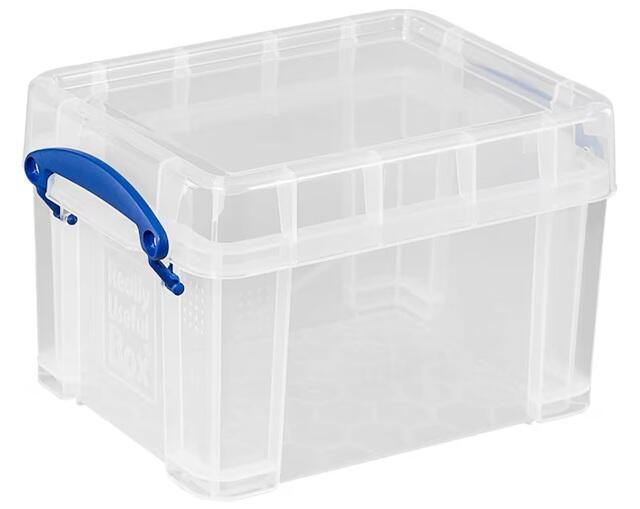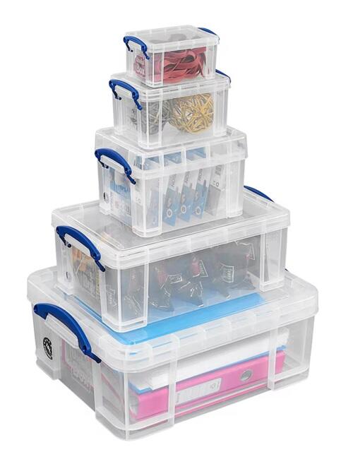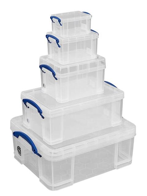 Really Useful Box Aufbewahrungsboxen-Set 32,3 l - 39,0 x 48,0 x 20,0 cm transparent 5 Größen (18,0 l, 9,0 l, 3,0 l, 1,6 l und 0,7 l)