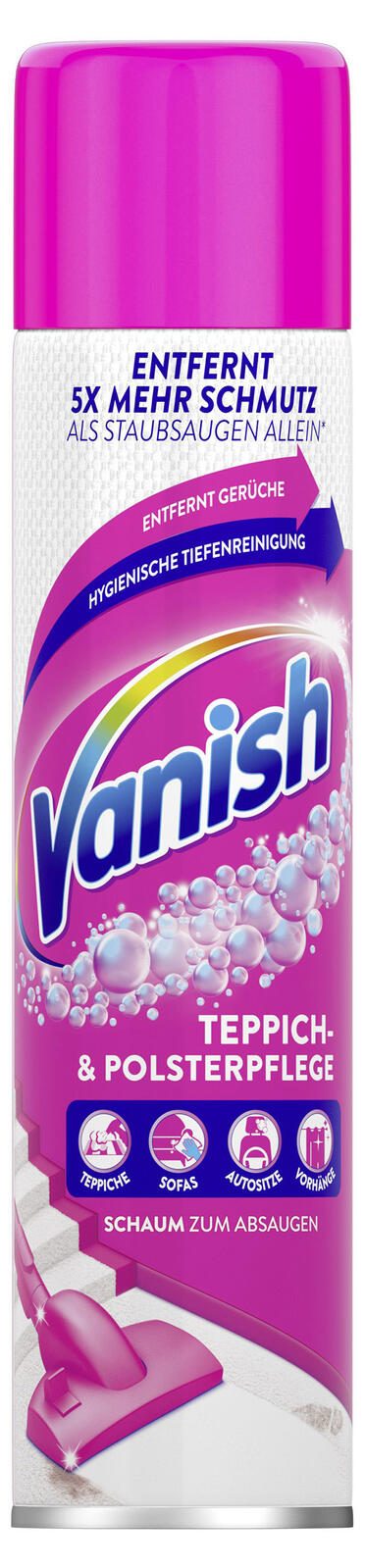 Verabschiede dich von mühsamer Teppichreinigung und wähle den Vanish Teppich Schaum für eine schnelle und effektive Reinigung. Hol dir jetzt die Sprühdose mit 650ml Inhalt und erhalte strahlend saubere Teppiche, auf die du stolz sein kannst.