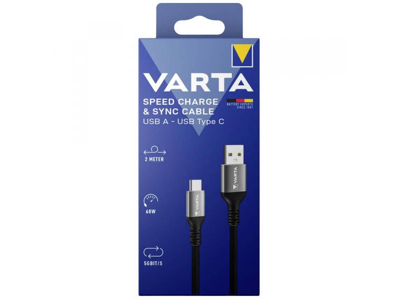 Varta 2 m, USB A, USB C, 5 Gbit/s, Schwarz, Grau
