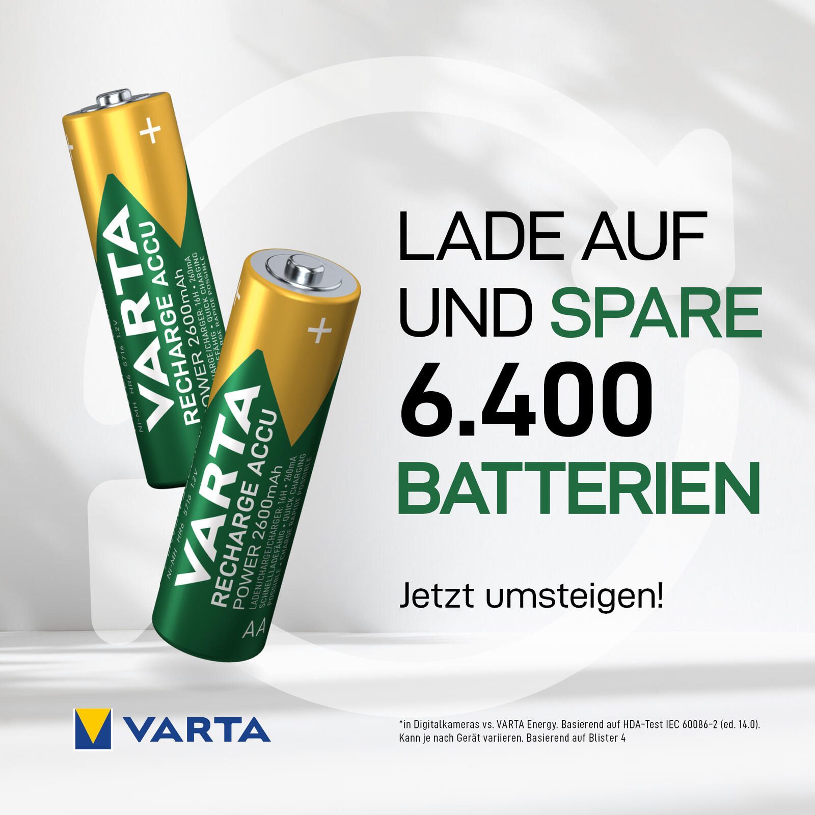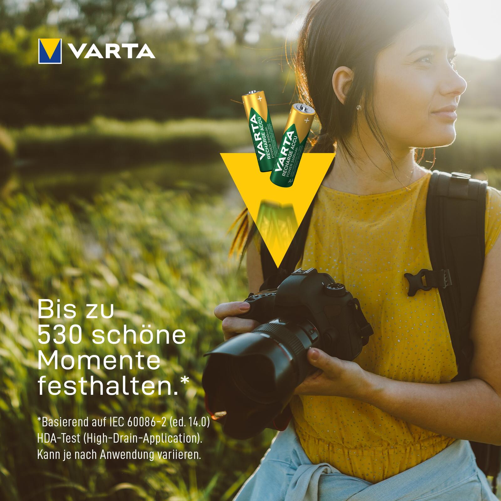 Der VARTA Recharge Accu Power AA mit 2700mAh Kapazität ist "Ready to Use" für die sofortige Nutzung direkt aus der Packung und ist die beste Wahl für Anwendungen mit hohem Stromverbrauch sowie für Standard- und Smart-Geräte. Sehr geringe Selbstentladung und kein Memory-Effekt